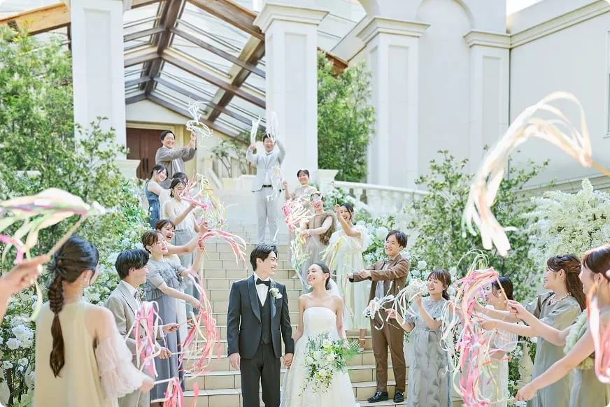 ご家族から親戚、そして友人、同僚へ。人生で出会った順に祝福を受けられるよう、ゲストの並び順にもこだわっています。