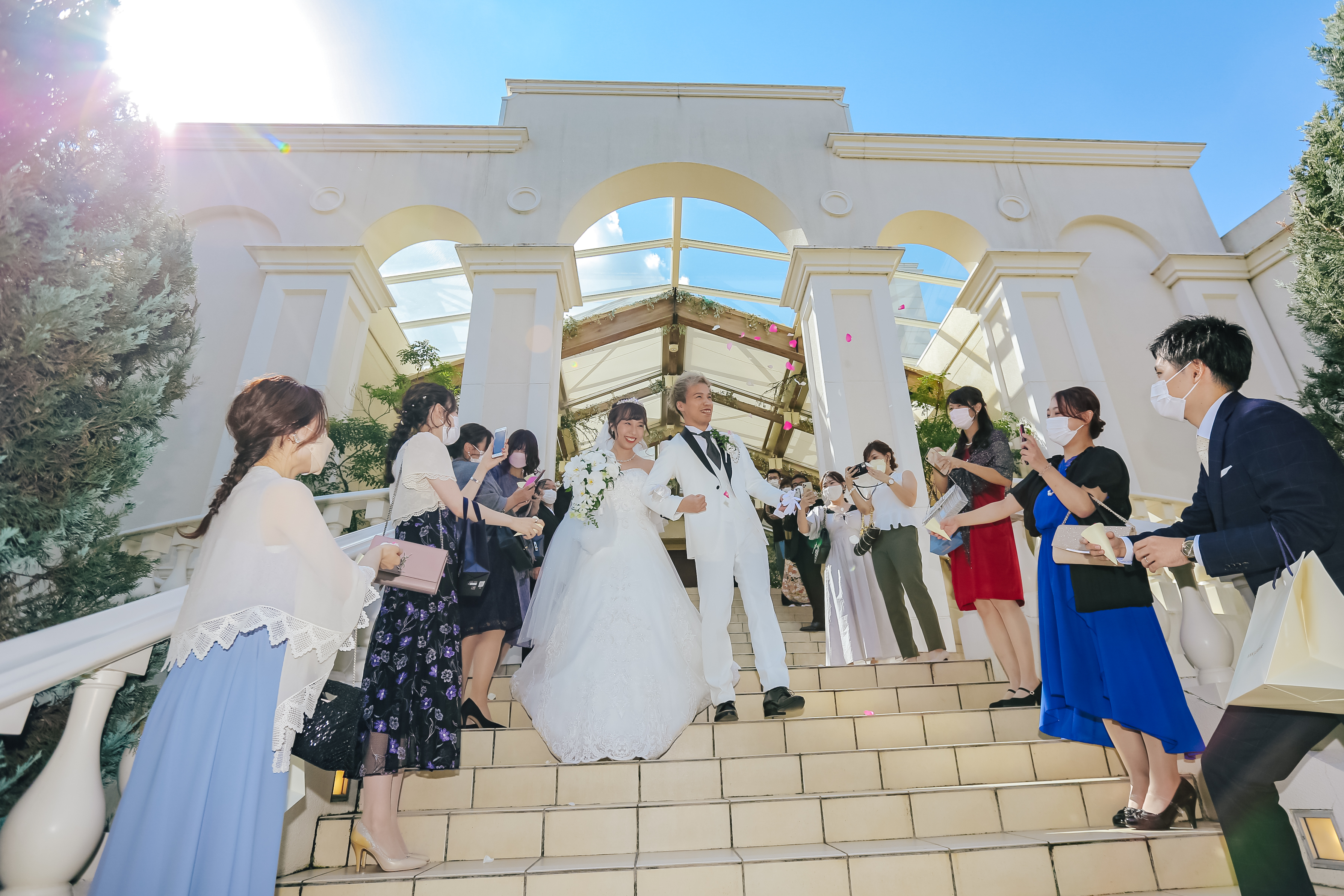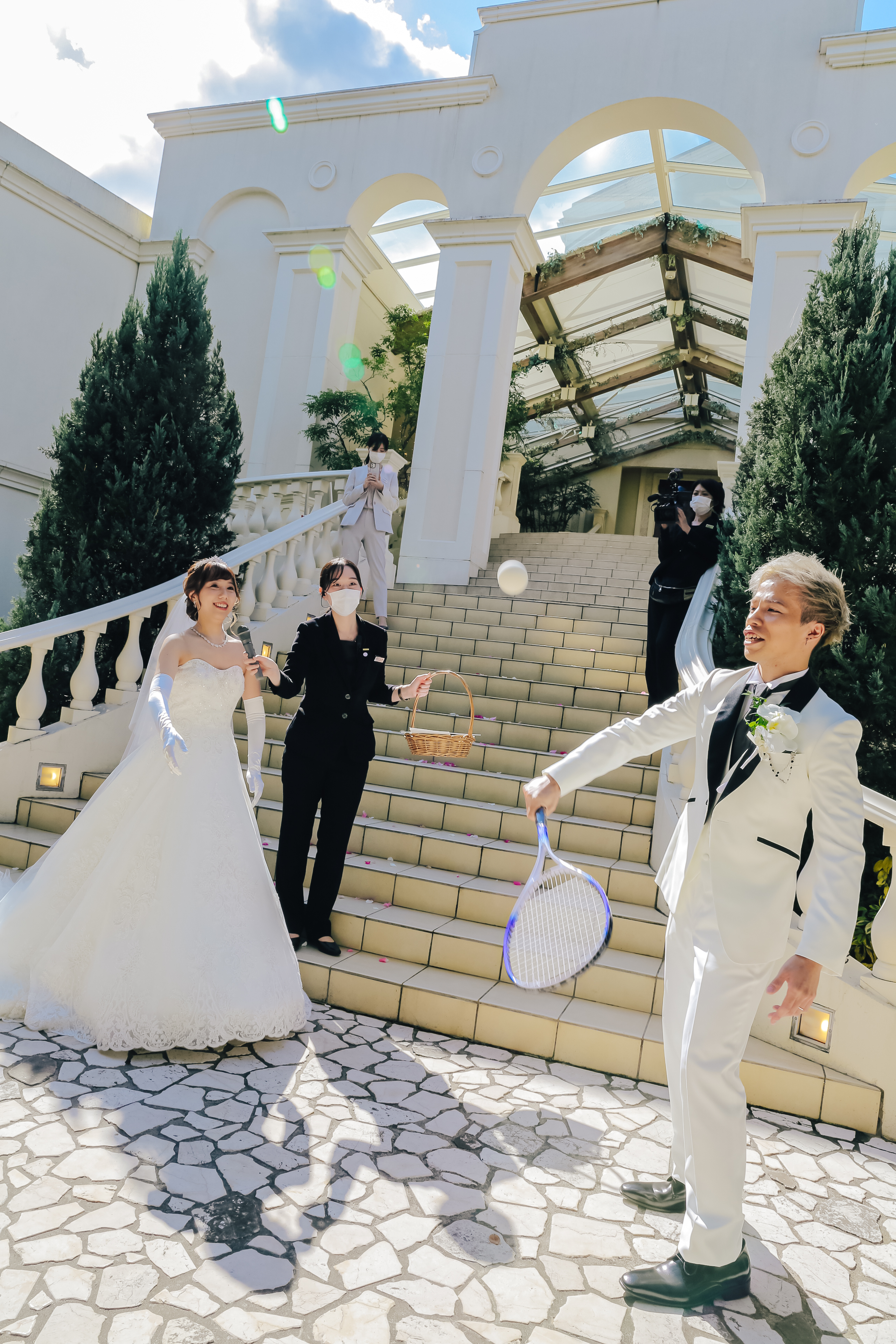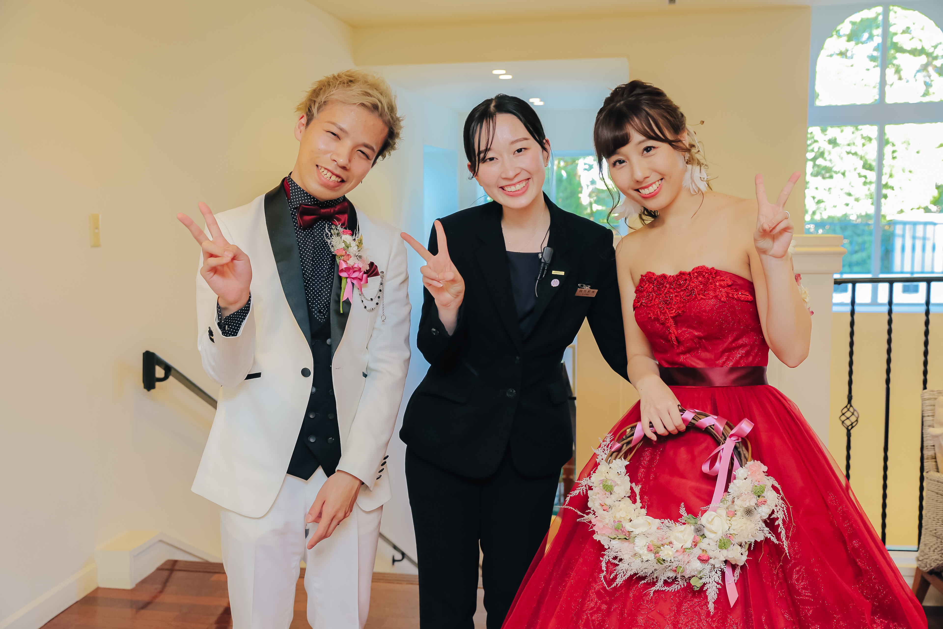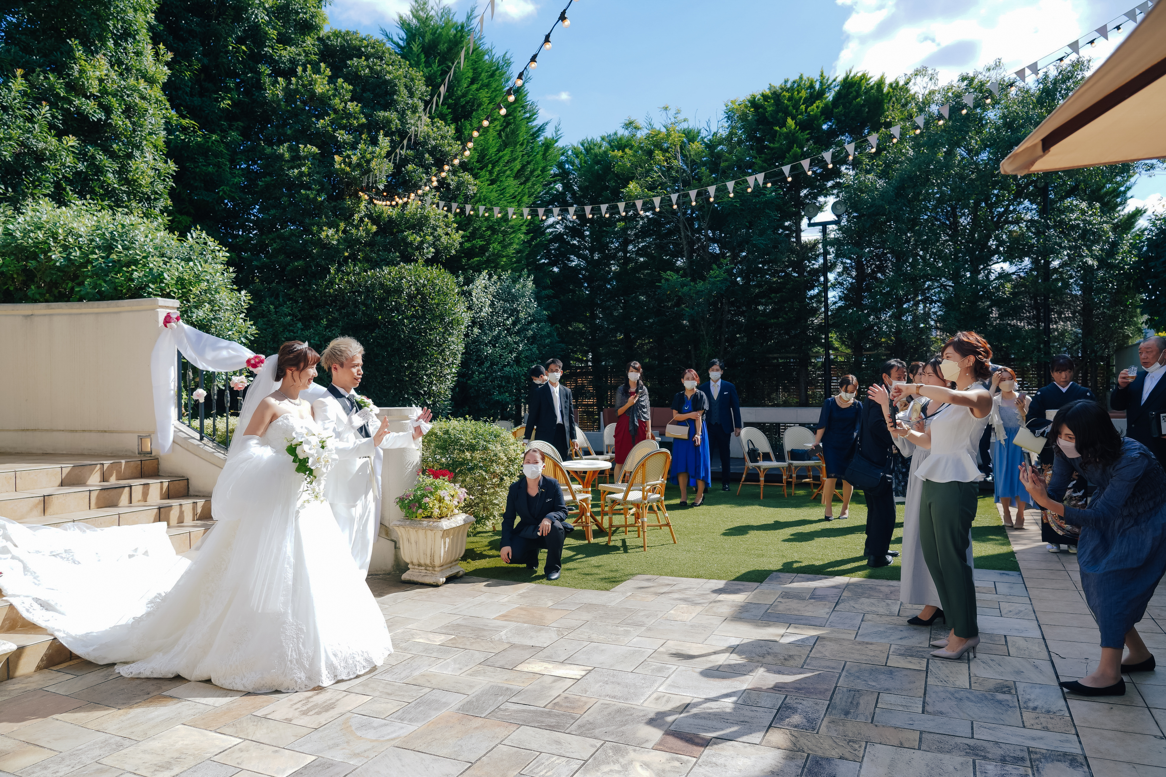 親しいご友人様とアットホームに過ごしたいとご希望いただいていたおふたり。かねてからの希望であったリングドックは大成功!おふたりならではのオリジナリティが出したい!とケーキは特大の3段ハンバーガーに!これにはゲストもびっくり!ゲスト想いのおふたりはみんなへのサプライズをたくさん計画しました!