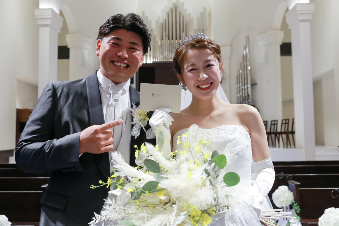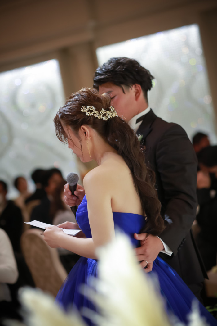 ドレス姿のご新婦に、涙が溢れてしまったご新郎でした 感謝の気持ちを綴ったお手紙を添えて、笑顔いっぱいなおふたり