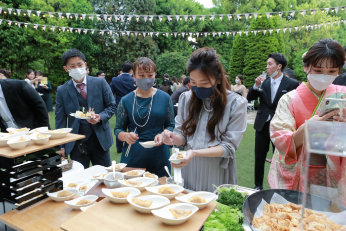 3種の餃子と甘いスウィーツを広大なガーデンで堪能しました