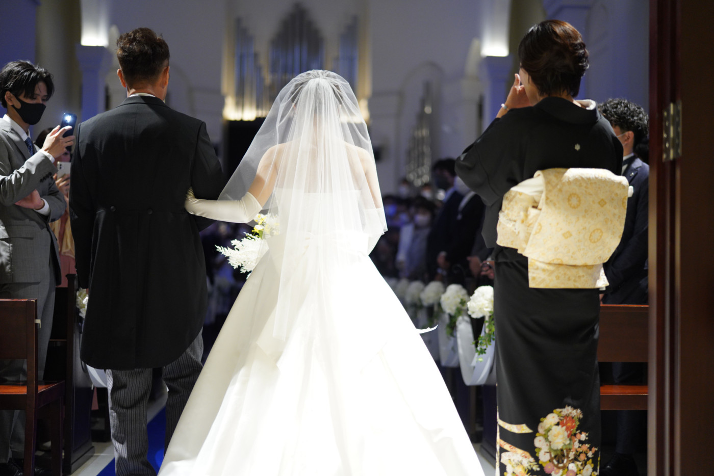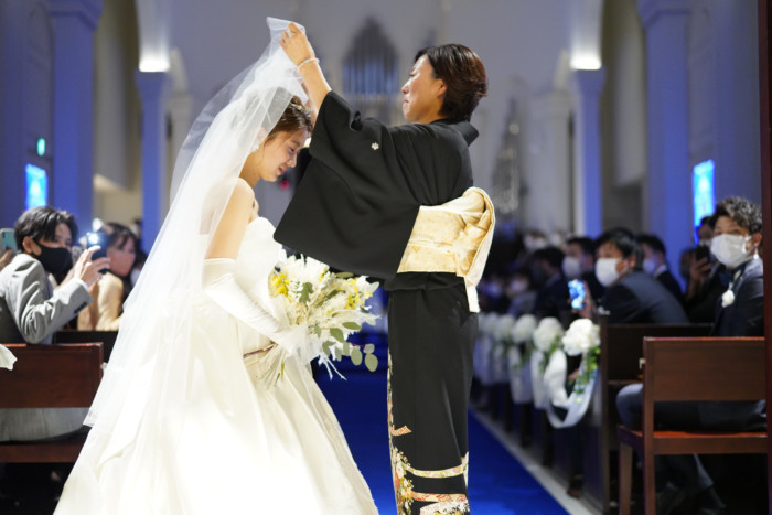 ご新婦はお母様によるベールダウン 子育ての卒業式でもある挙式は今までの人生を振り返り 思わず涙がこぼれる時間でした
