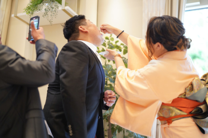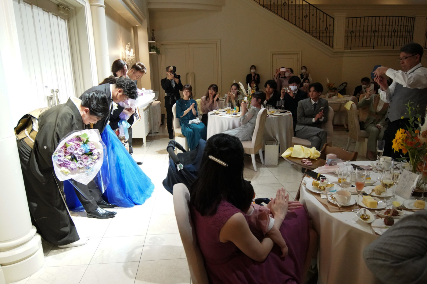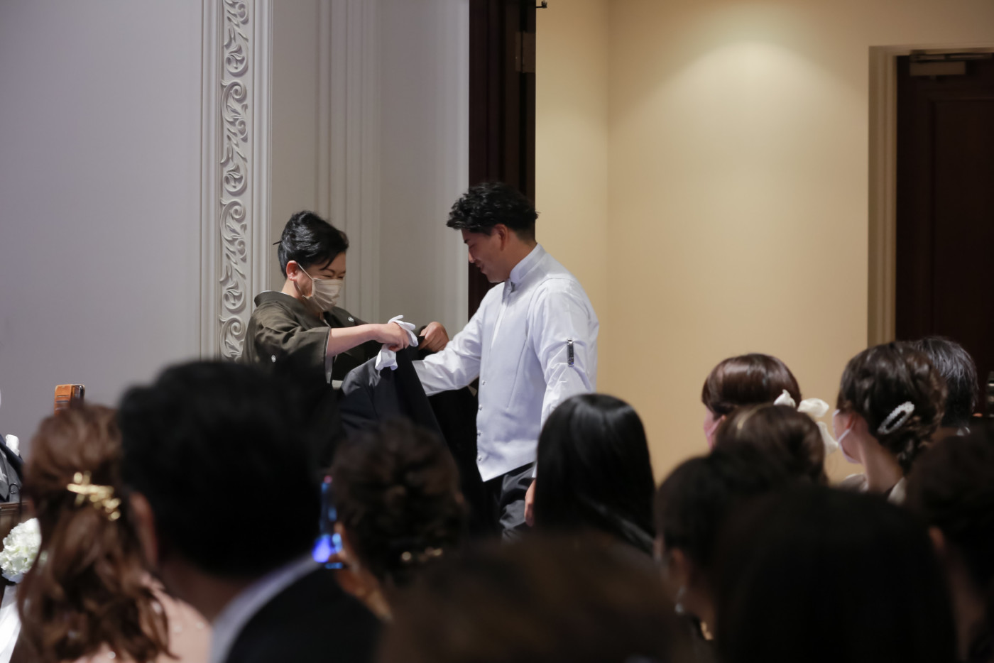 ご新郎はお祝いのお言葉をいただき、お兄様と中座されました