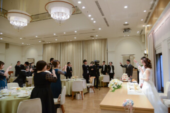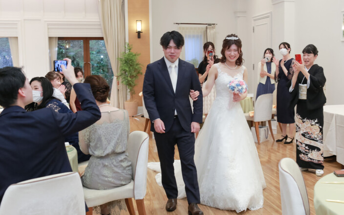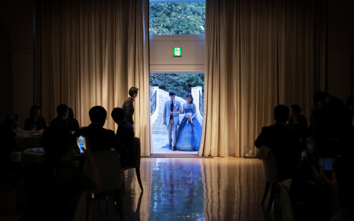 ウェルカムパーティのあとはみんなが待つ披露宴会場へ 入場の瞬間は またどきどき