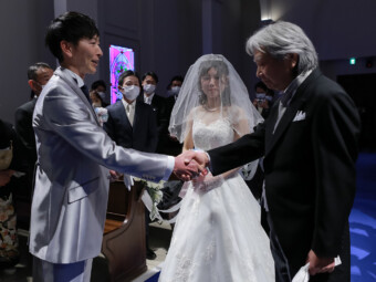 お父様が大切な娘を託す瞬間 握手をしたその手にはたくさんの想いを感じます