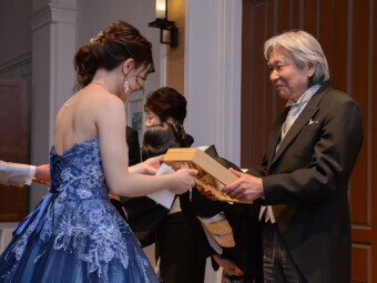 ゲストとの会話を大切に過ごしたかったおふたり。挙式ではウェディングツリーを使った家族やゲストとアットホームな結婚式を作り、披露宴では歓談の時間を多くとれるような進行を考えました。残った写真にもゲストや家族がふたりと過ごしている様子がたくさん。ゲストや家族へのサプライズや感謝が詰まった素敵な1日になりました。