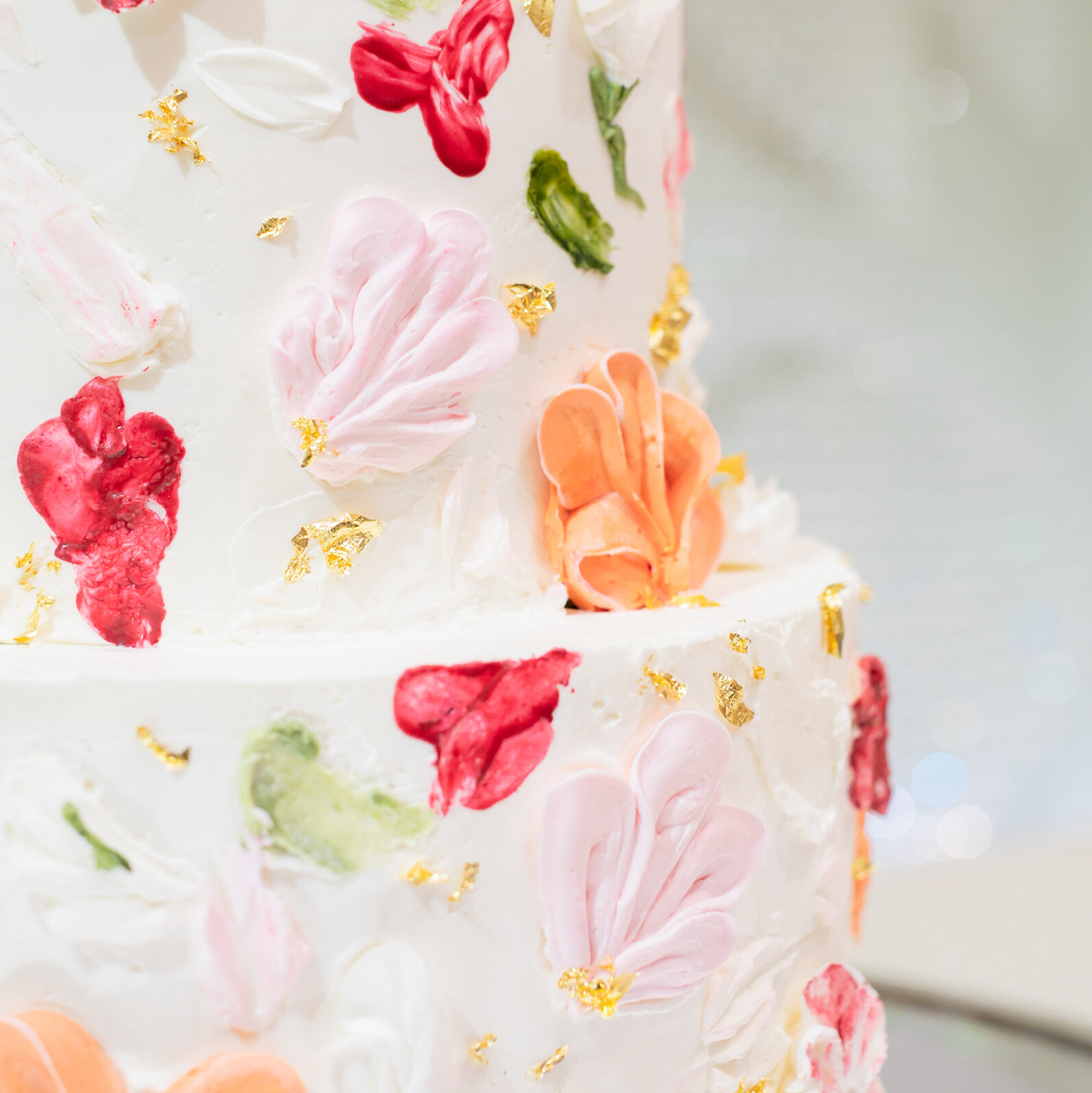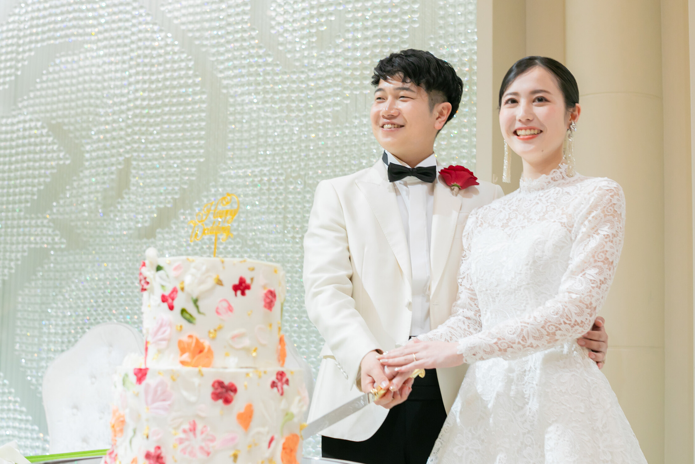 ウェディングケーキは、クリームでお花を表現し色味にこだわってデザイン、カクテルは、好きな映画に登場するエスパマティーニをおふたり風にアレンジして作成し、アイテムも一つひとつこだわりました