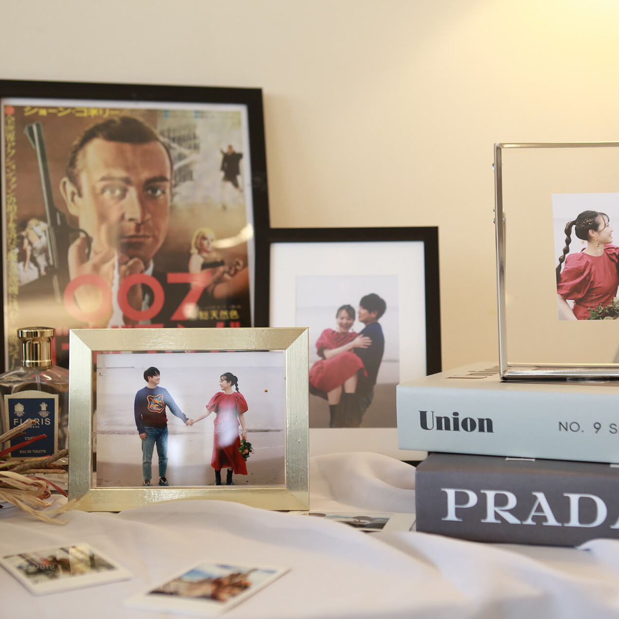 前撮りのお写真で作られたウェルカムアイテム。どれもおしゃれで統一感のある空間でした