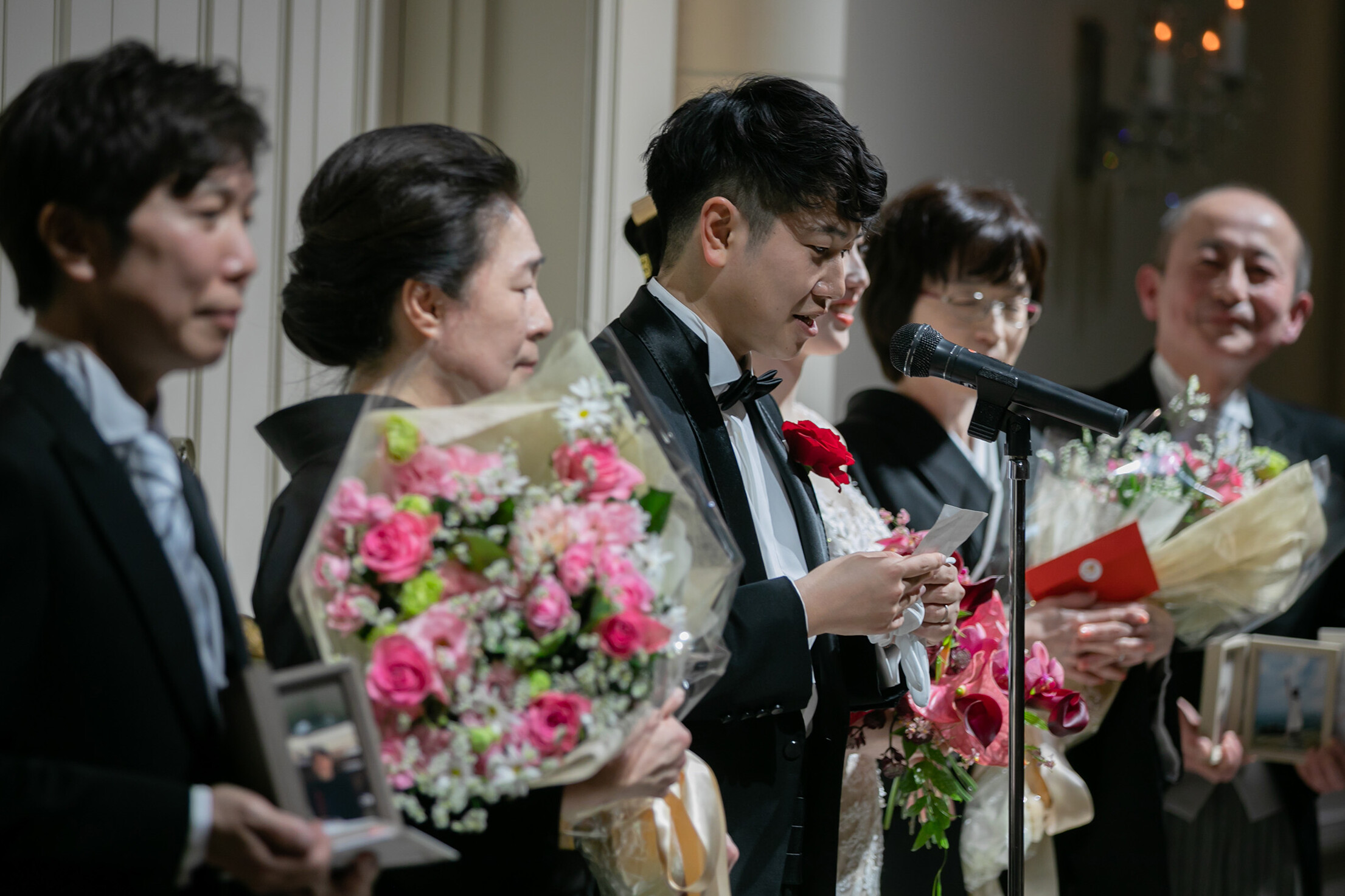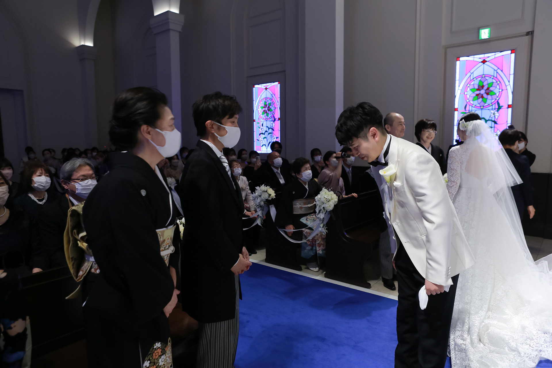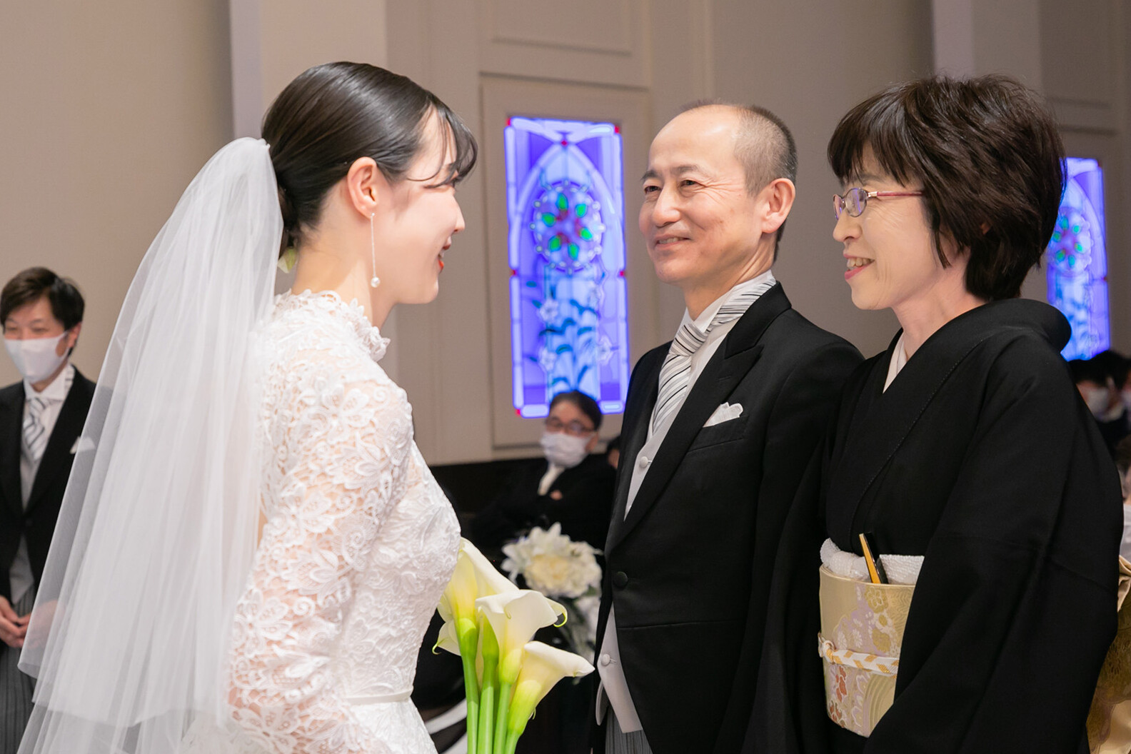 退場の前には、おふたりそれぞれが親御様の元へ これまでの感謝を届け、明るい未来へと手を取り合い出発されました
