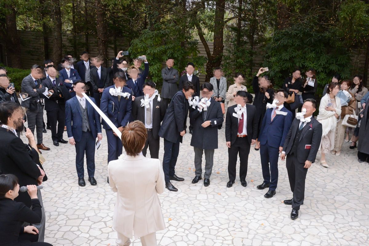 「メリハリある1日にしたい」「ゲストにも楽しんでほしい」という思いのもと、ゲスト参加型の演出を多く取り入れたおふたり。シーンごとで使う曲やかけるタイミングにこだわり、印象に残る結婚式を創り上げました。