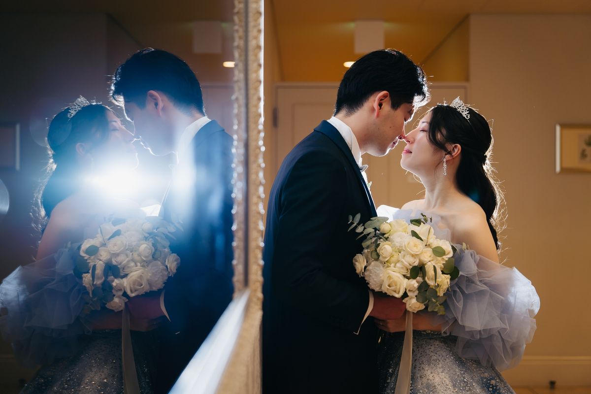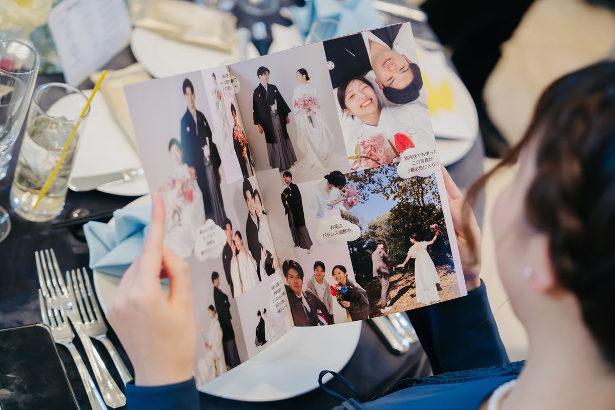 結婚式準備では、ご新郎が能動的に取り組み、ご新婦のこだわりを尊重しながら進めている様子が印象的でした。結婚して初めての共同作業である式の準備を経て、ご新婦は「夫のことを改めて大切にしたい」と感じたそうです。 ペーパーアイテムやプロフィールムービーは手作りに挑戦。また、WEB招待状は無料デザインを使い、エスコートカードの代わりにLINEで事前に席次表を送るなど、便利なツールを駆使して準備されました。