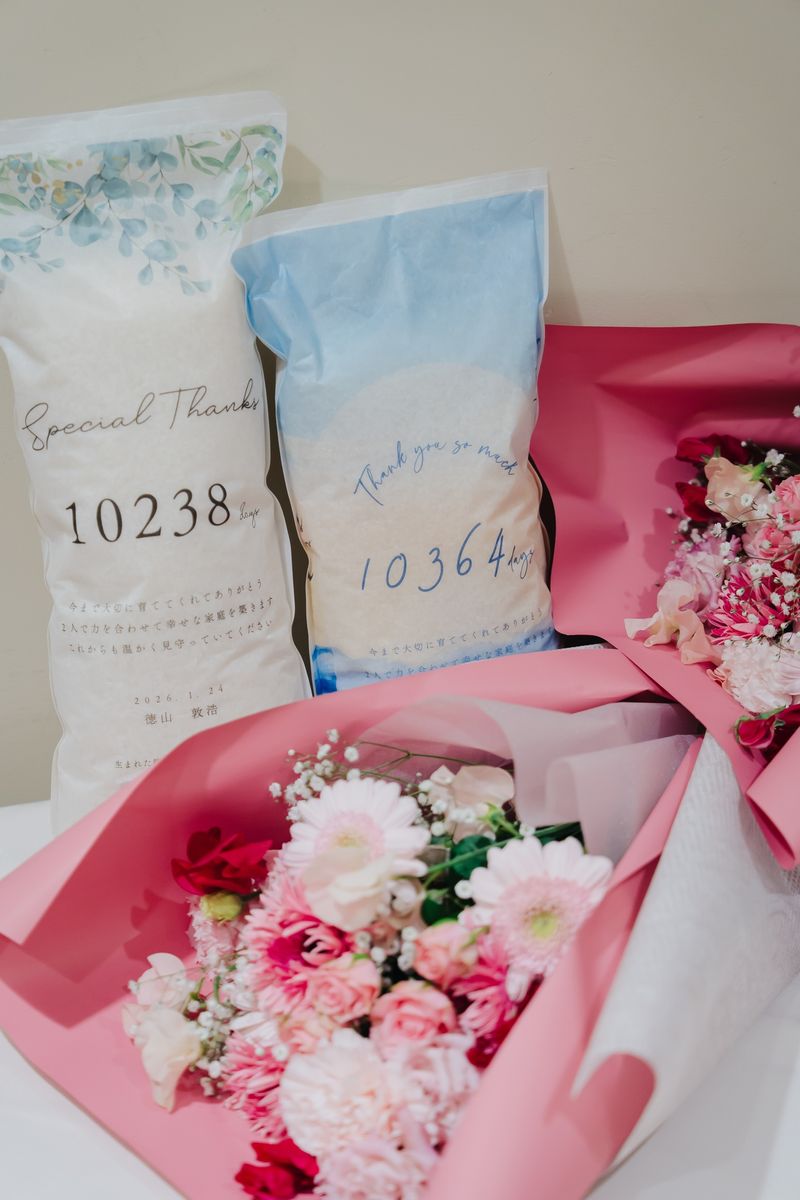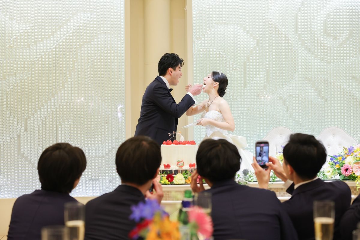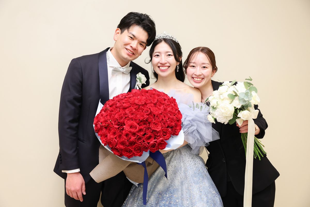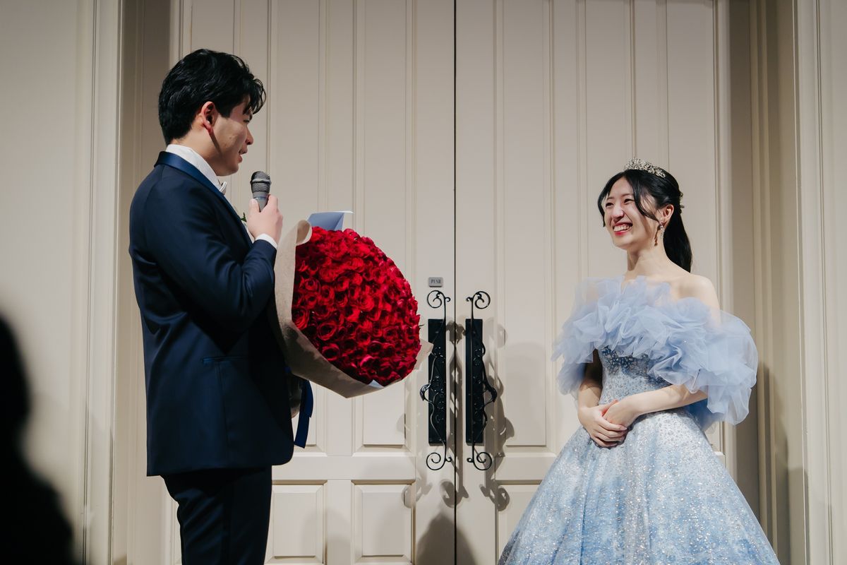 様々なことにこだわりを盛り込んだおふたりですが、特にファーストバイトでご新婦が両方食べるという演出や、サプライズで登場させたデザートビュッフェには、ゲストの皆様も大いに盛り上がりました。 また、ご新婦がゲストとご家族に宛てたお手紙を読まれた際は、会場が感動的な雰囲気に。さらに、ご新郎からご新婦へ、108本の薔薇を贈るサプライズもあり、ご新婦の嬉しそうな表情に、会場が温かく幸せな空気に包まれました。