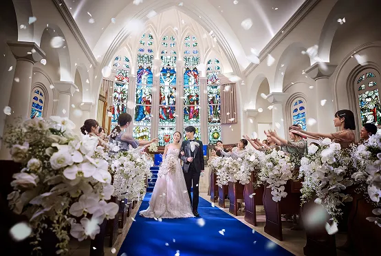120年の歴史を刻むステンドグラスが、おふたりの誓いをやさしく包み込む。鐘の音に包まれながら、おふたりの永遠の物語が始まります。