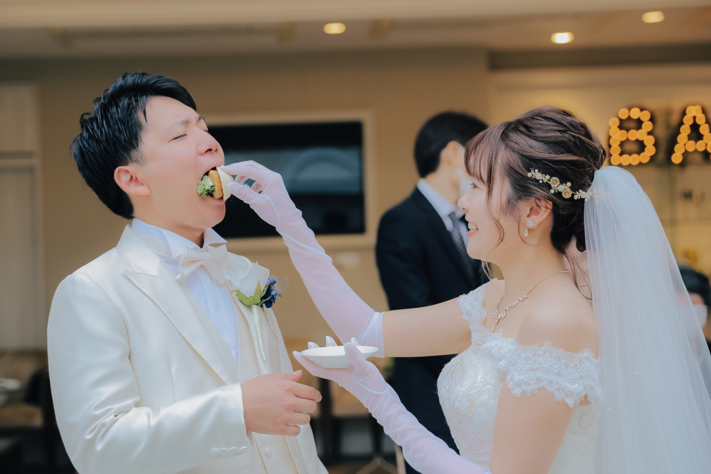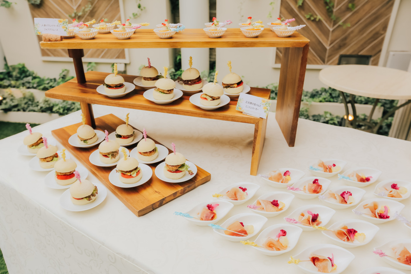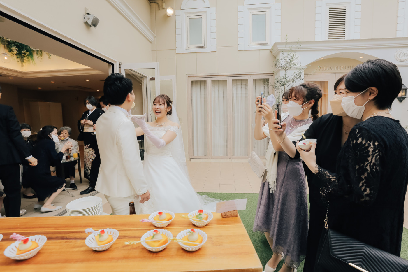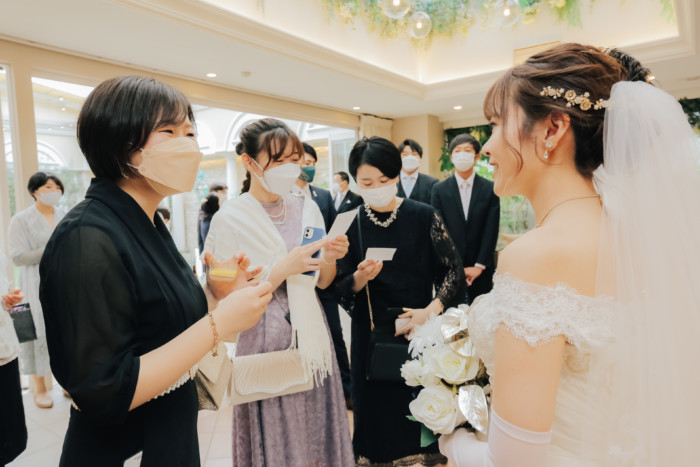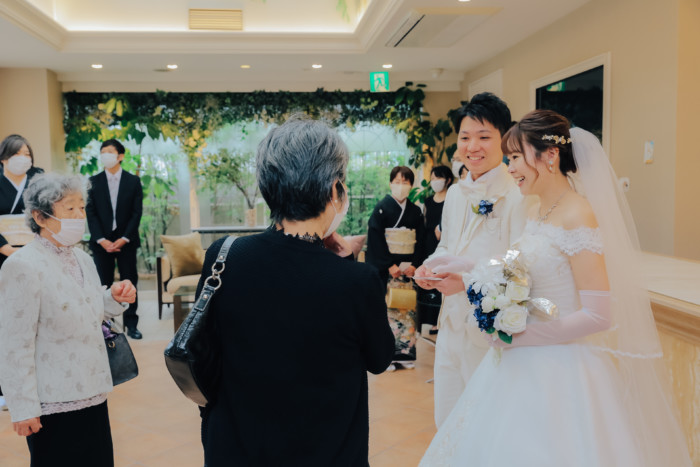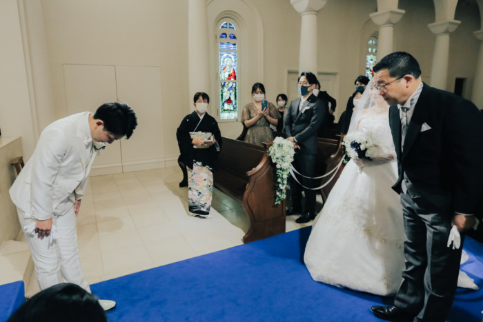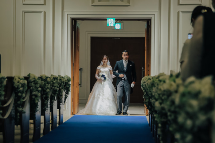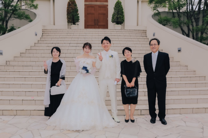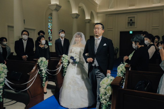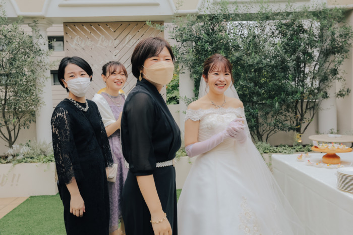 ふたりの結婚を誓う儀式として、挙式を行うことを選択したおふたり。 ベールダウンは今まで身支度を整えてくださったご新婦お母様が。 今まで育ててくれた長い道のりを一緒に歩いてくださるのはご新婦お父様。 普段は恥ずかしくて口に出来ない感謝の想いを表現するひと時に。 お越しいただいた皆様におもてなしとしてガーデンパーティのお時間をご用意! お写真タイムとたっぷりとお話ができる笑顔溢れるアットホームな1日となりました。