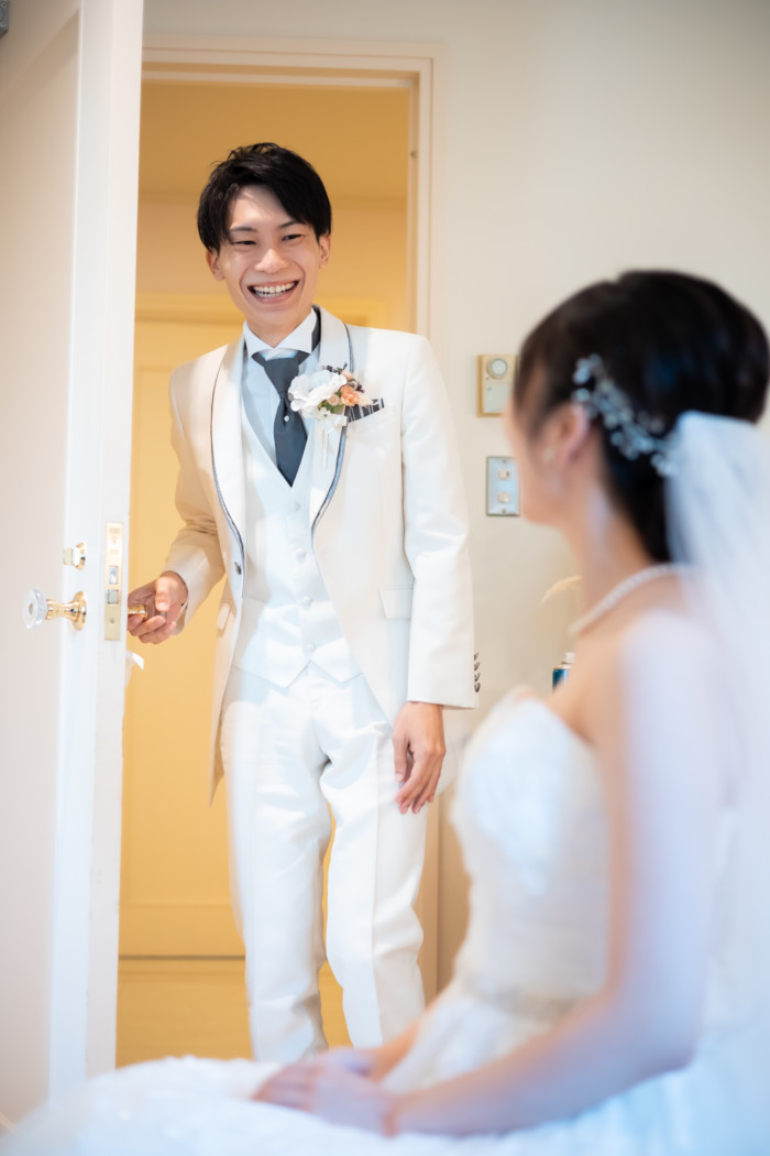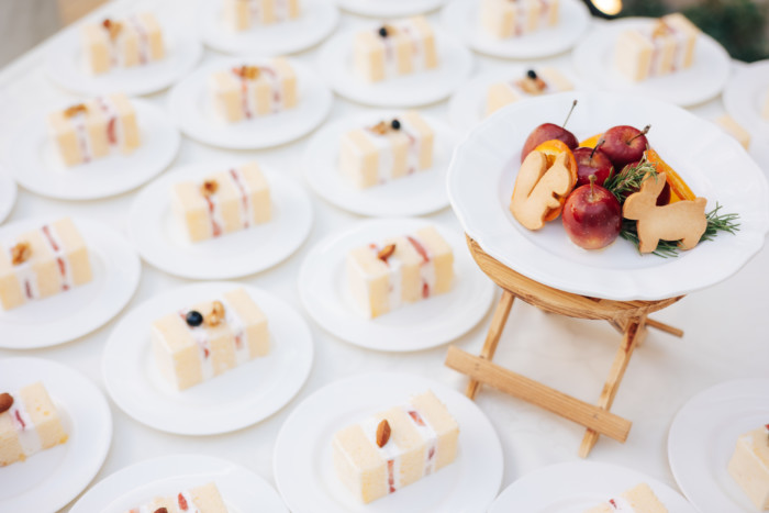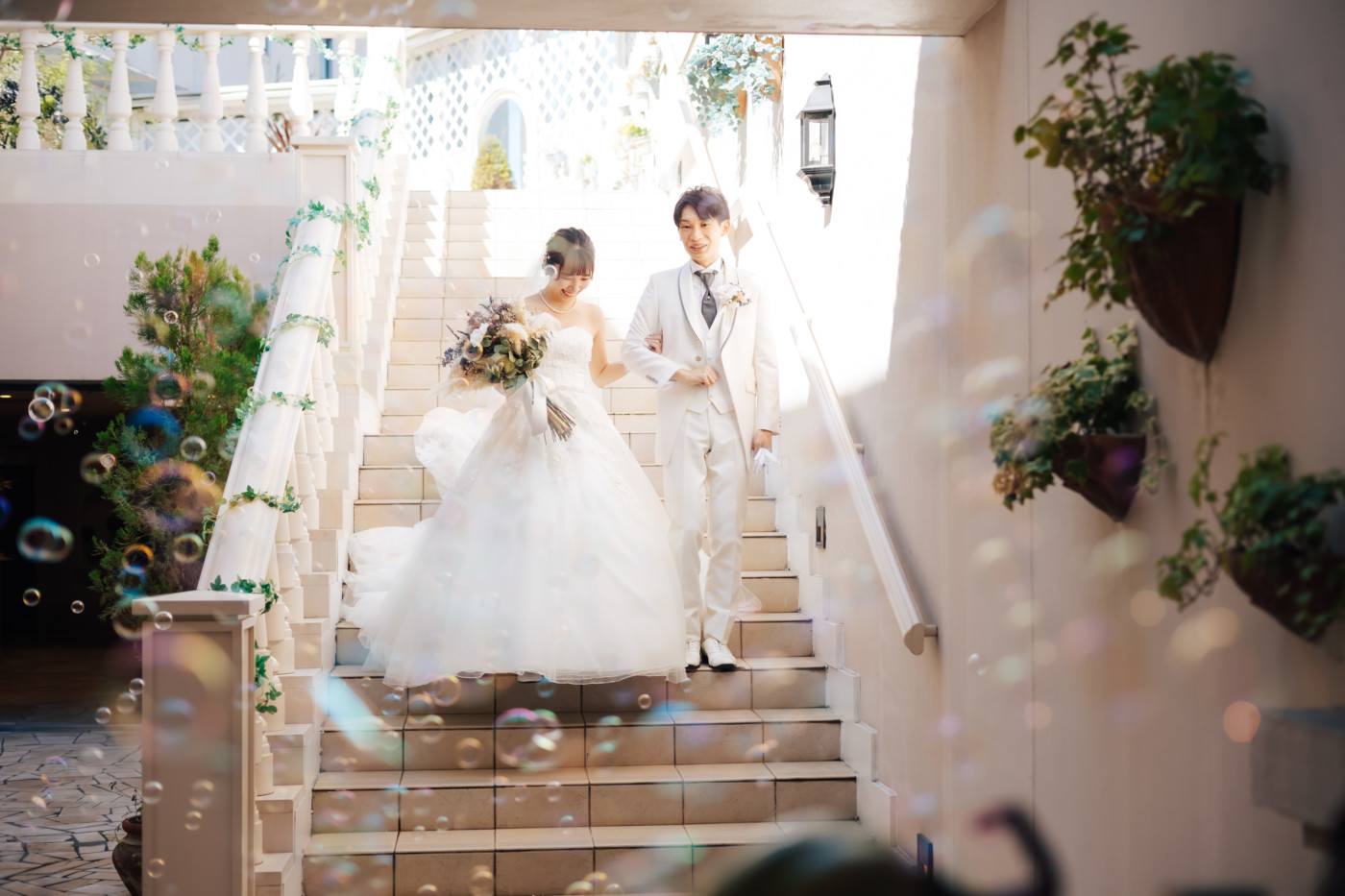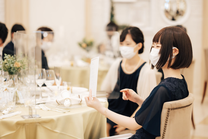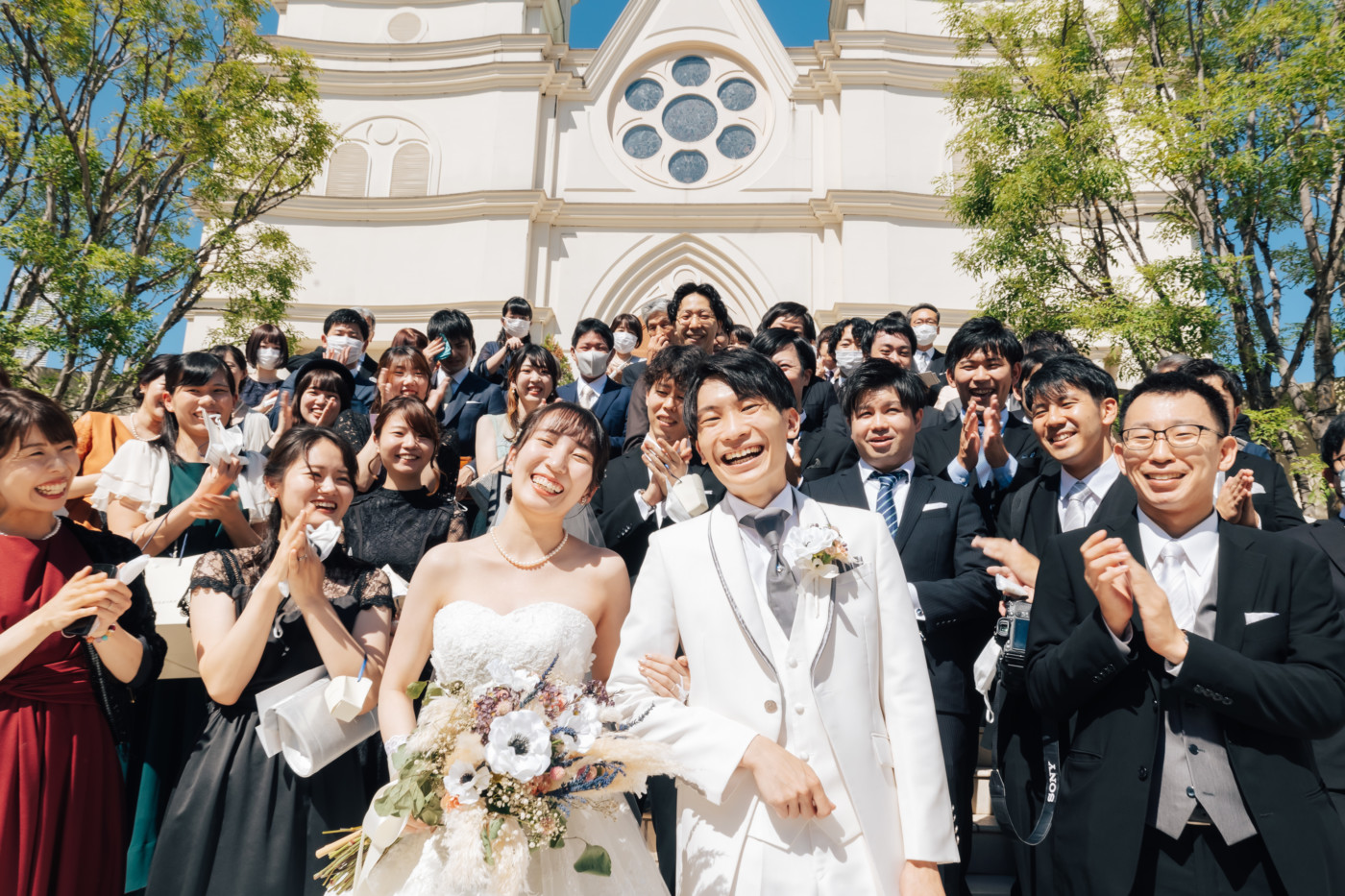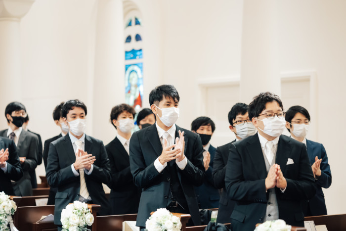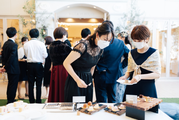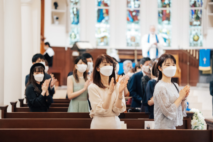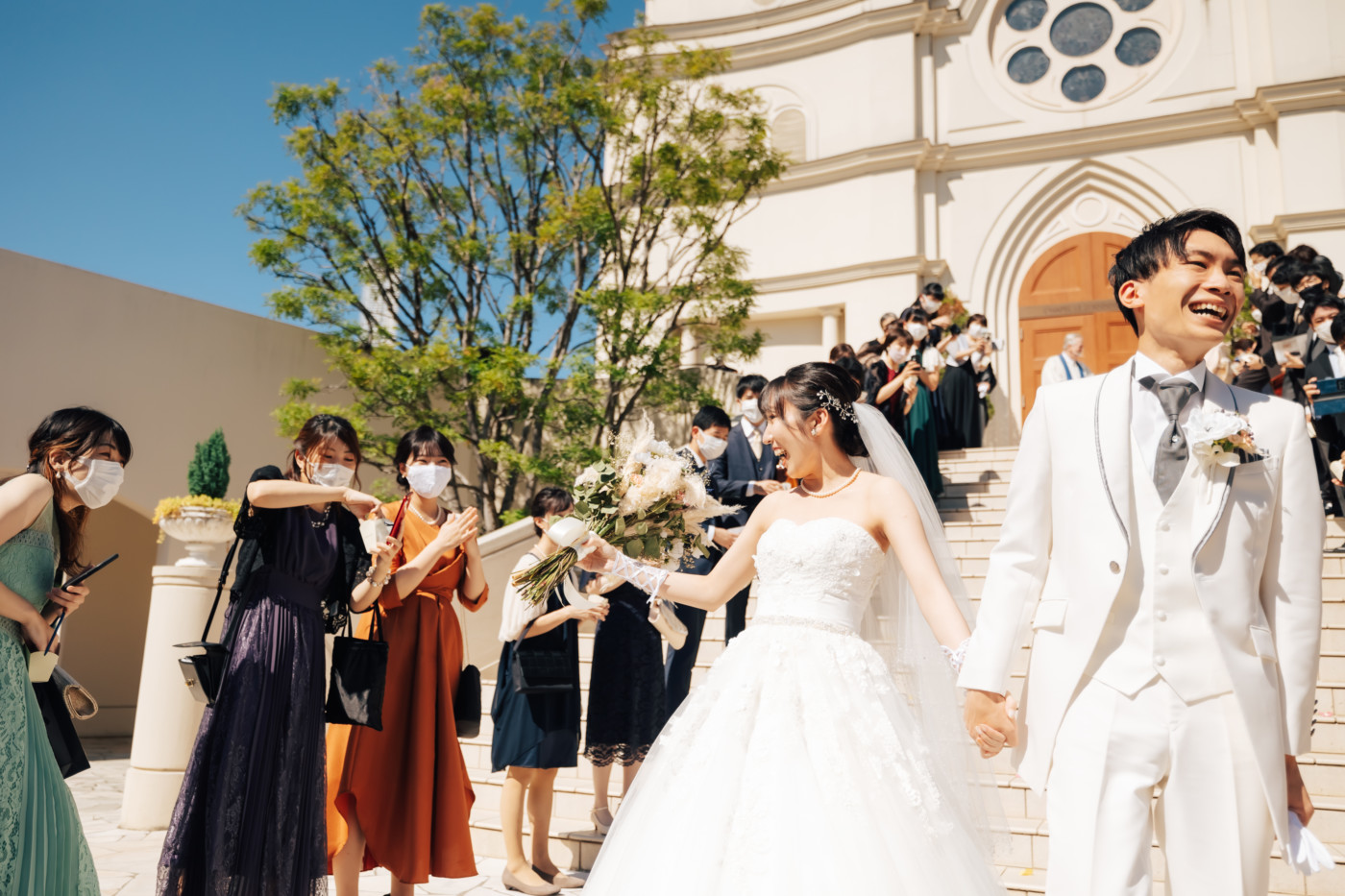 グリーンを基調としたナチュラルな世界観へ。 フラワーシャワー後にはおふたりそれぞれでお肉クッショントス!ドキドキ・ワクワクの演出をご用意! こだわりのウエディングケーキには、可愛らしい動物がかくれんぼをしている自然溢れる空間に♪ 再入場ではウエディングドロップスで各テーブル皆様にご挨拶を…! そしてデザートタイムでは、天の声とともに、お面をかぶったおふたりが登場! 笑顔がたくさん溢れる1日になりました。