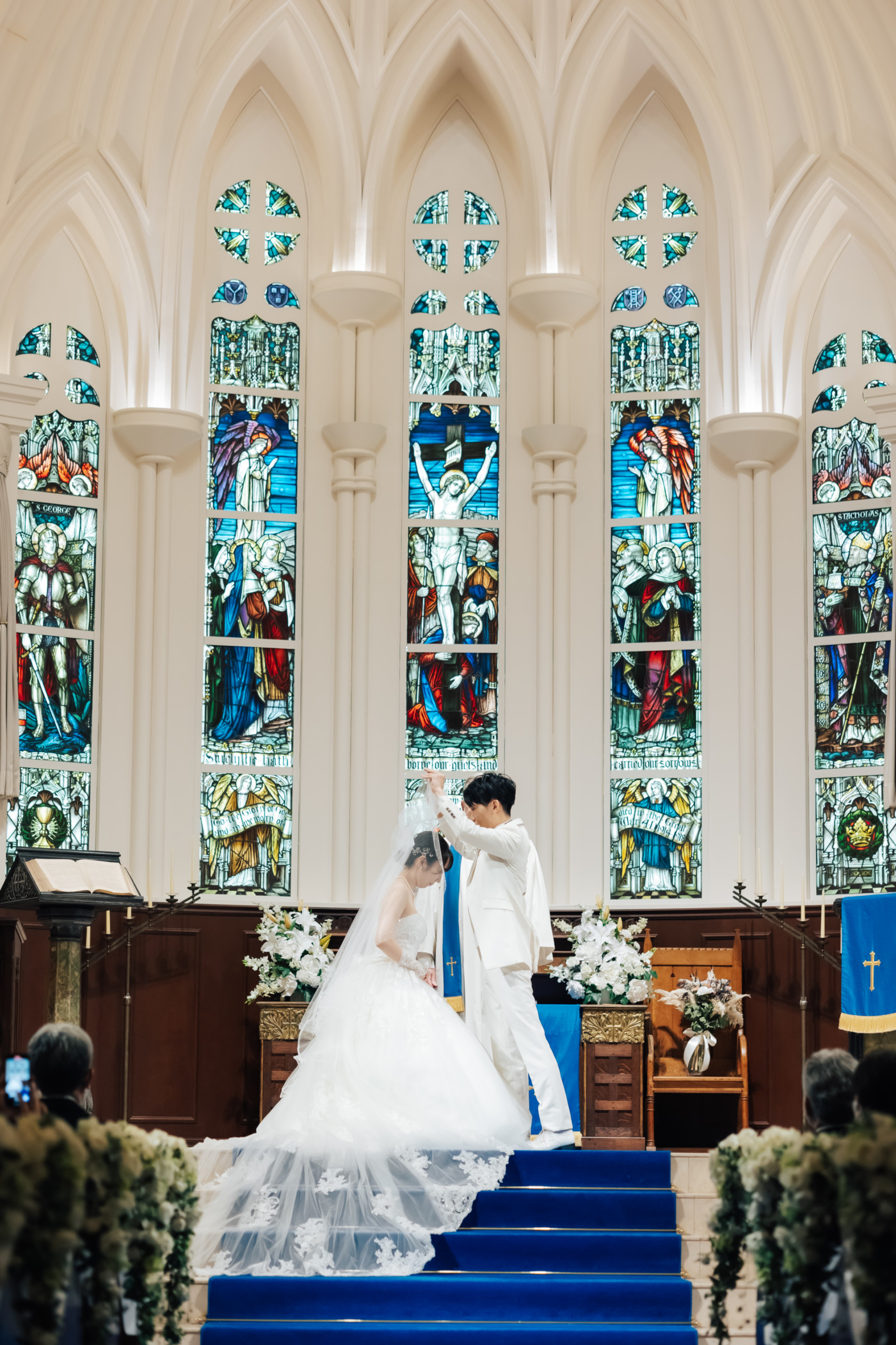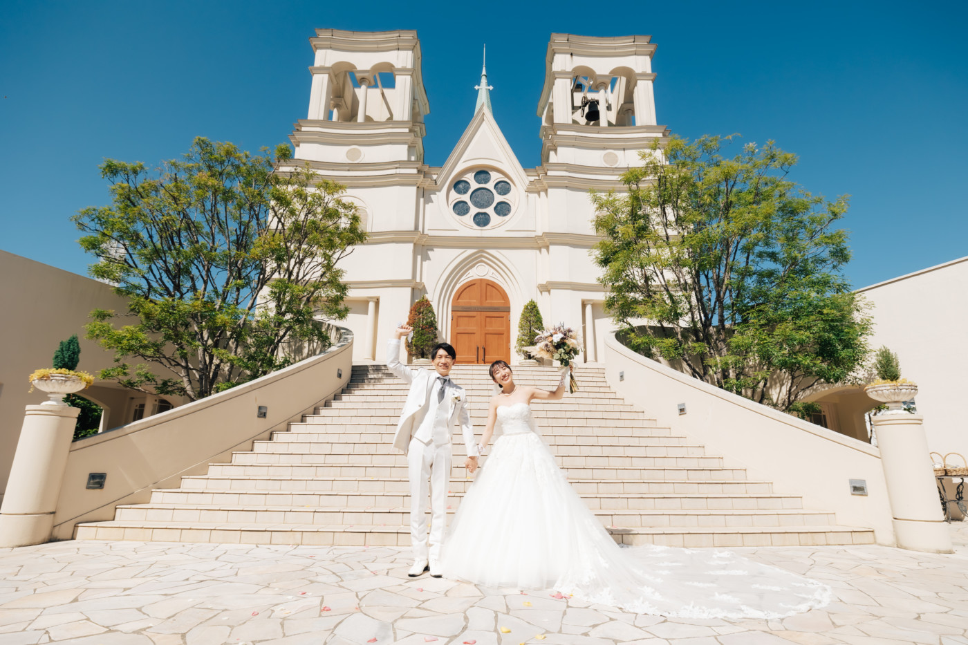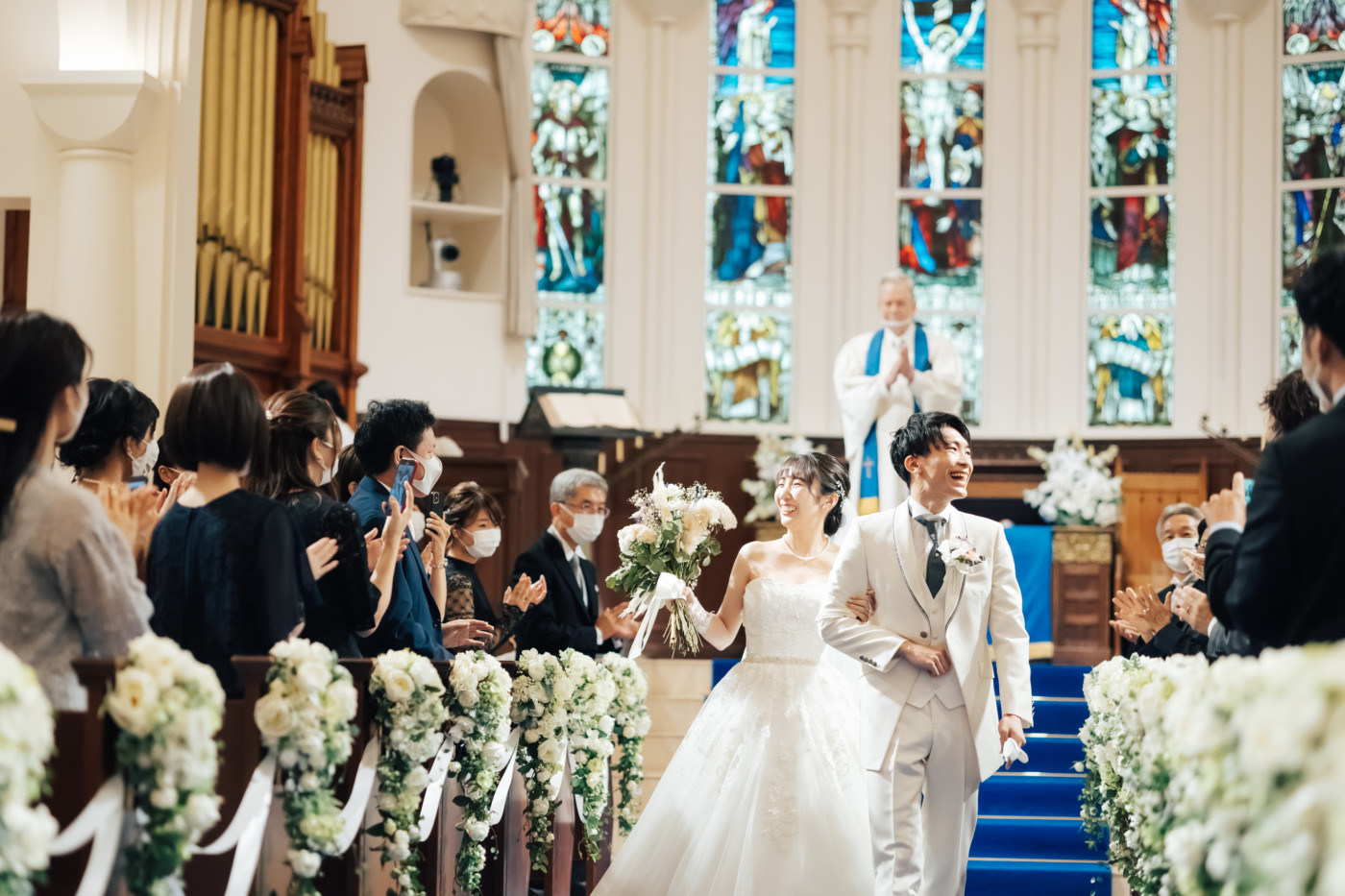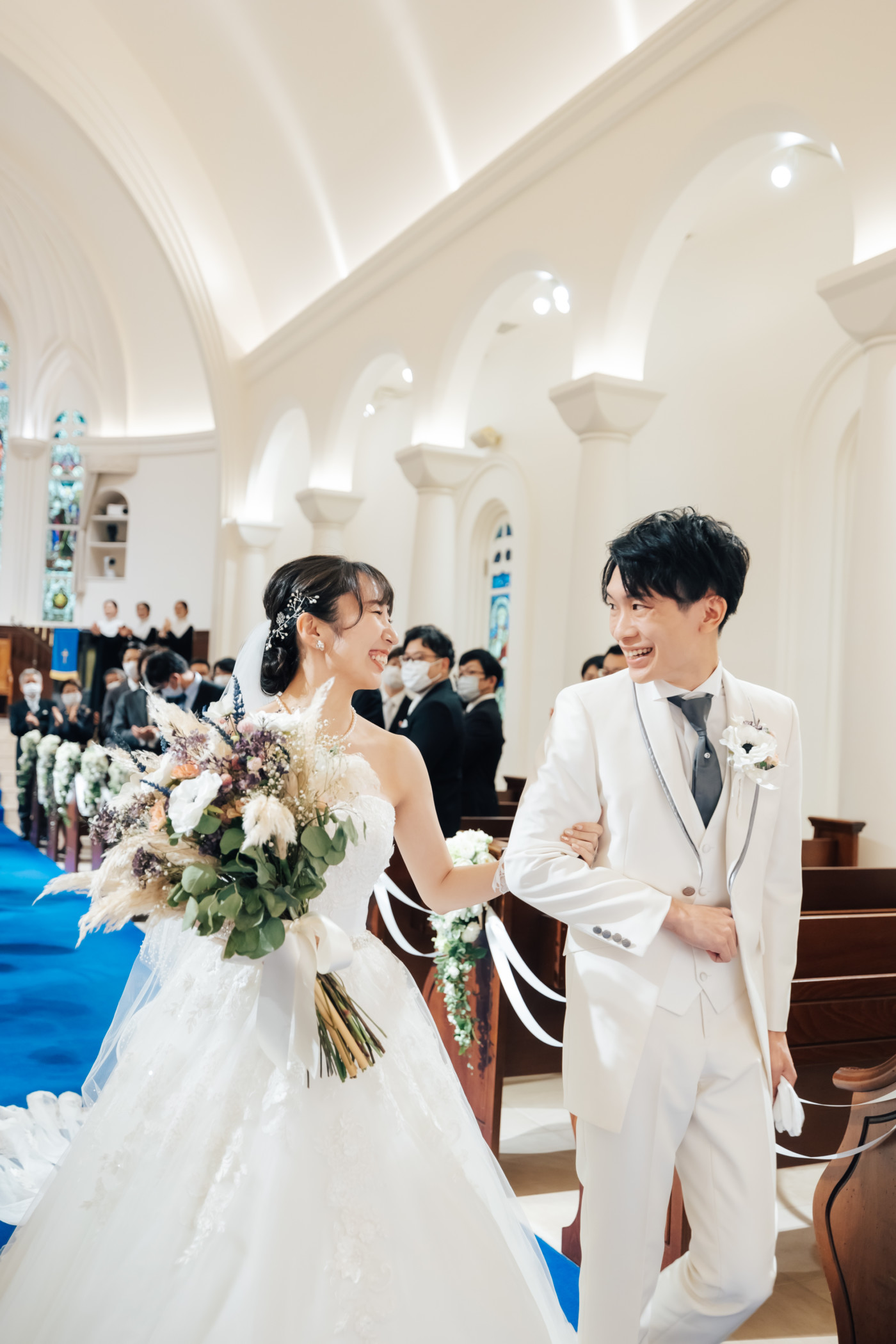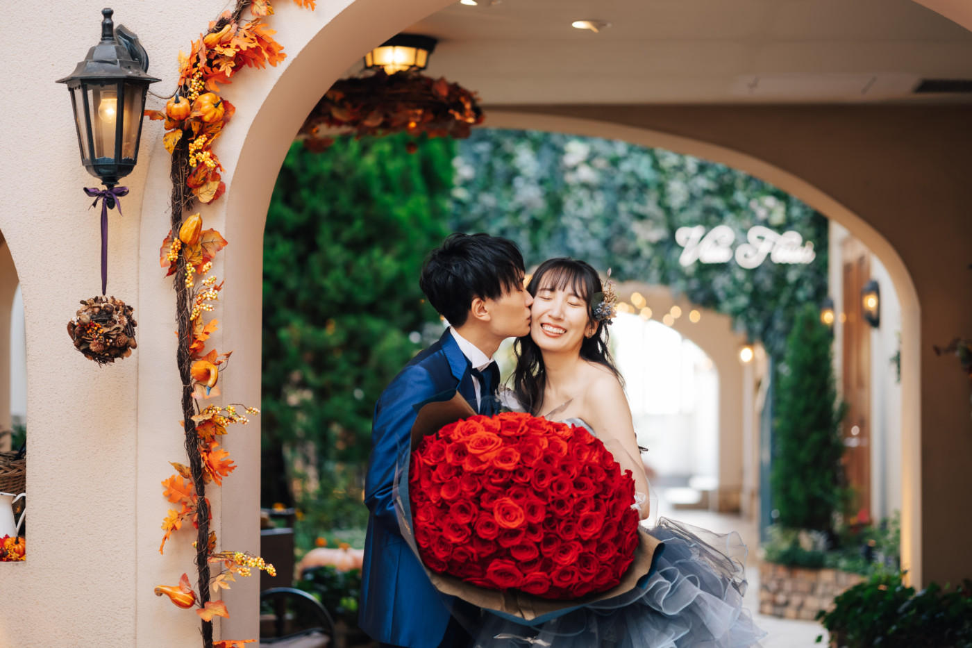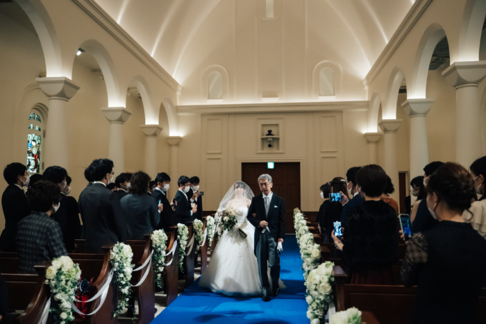 グリーンを基調としたナチュラルな世界観へ。 フラワーシャワー後にはおふたりそれぞれでお肉クッショントス!ドキドキ・ワクワクの演出をご用意! こだわりのウエディングケーキには、可愛らしい動物がかくれんぼをしている自然溢れる空間に♪ 再入場ではウエディングドロップスで各テーブル皆様にご挨拶を…! そしてデザートタイムでは、天の声とともに、お面をかぶったおふたりが登場! 笑顔がたくさん溢れる1日になりました。