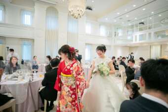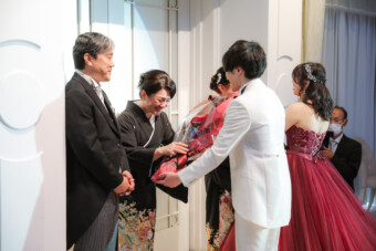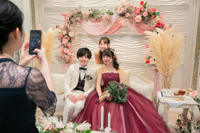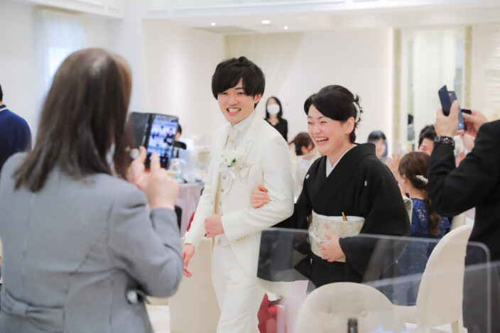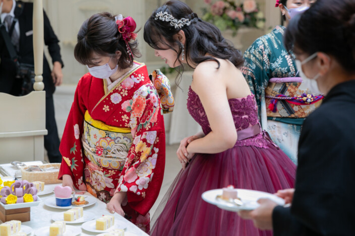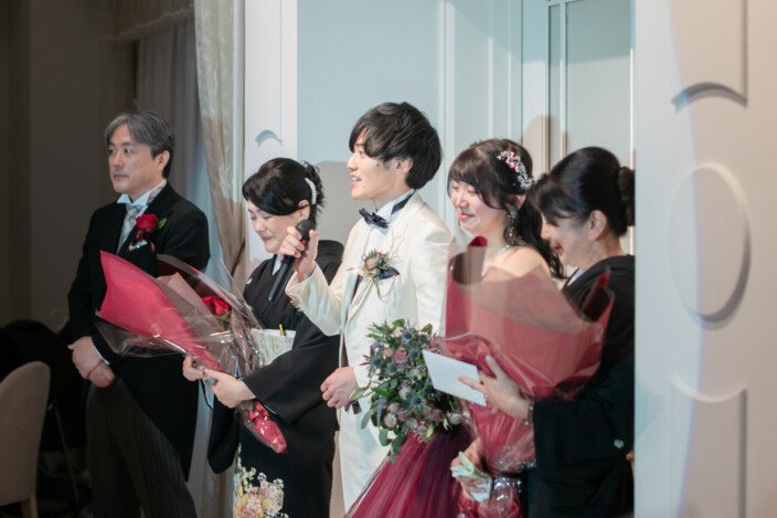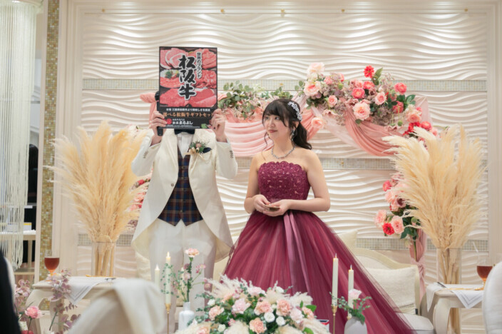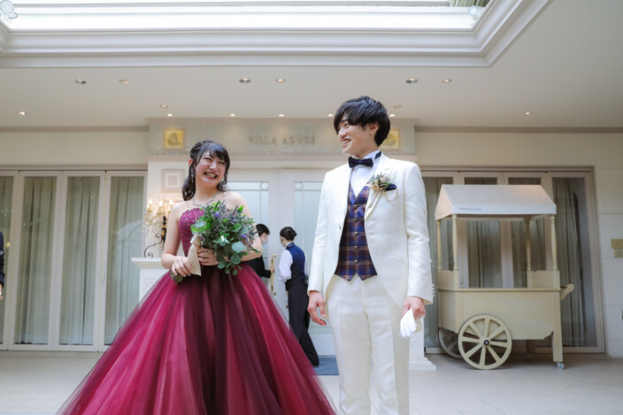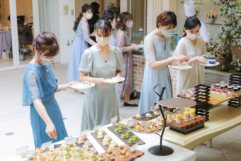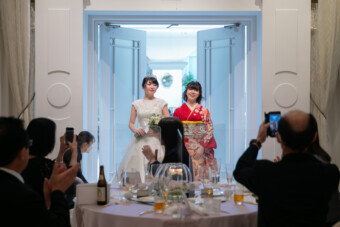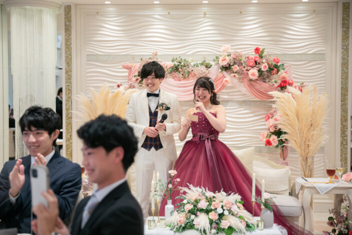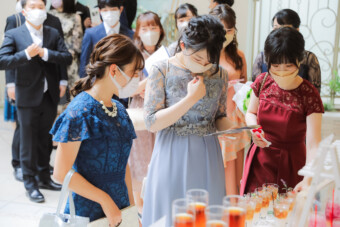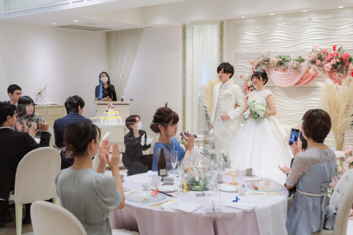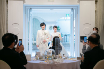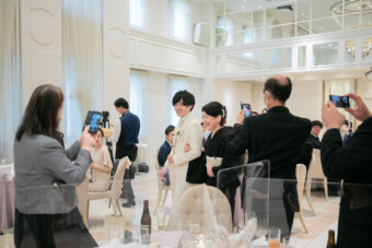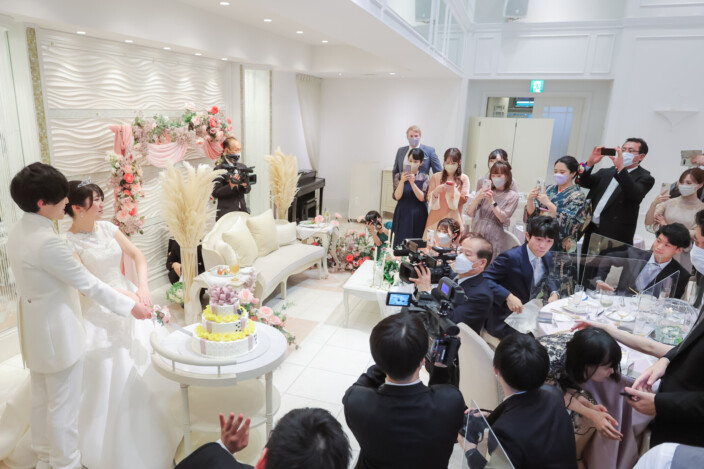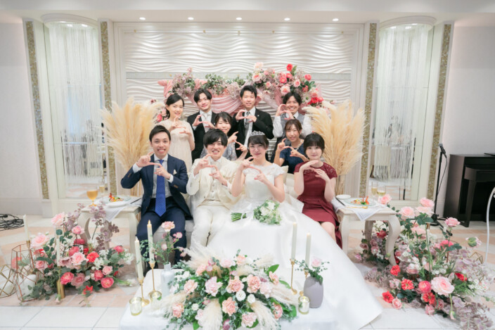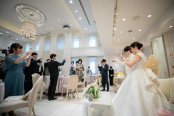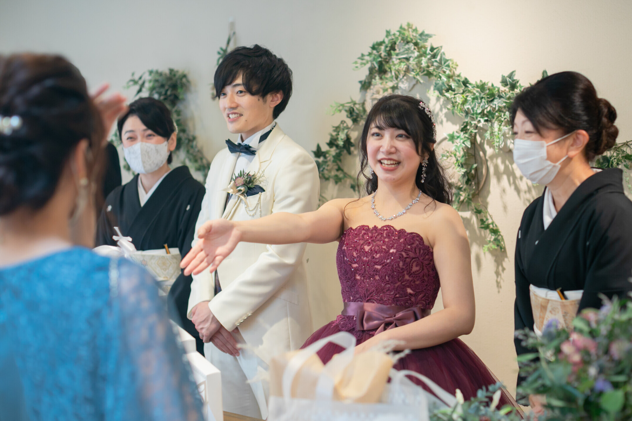 テーマは「つながり」 両家や知らないゲスト同士が出会う場だからこそ、 ふたりをきっかけに会話が弾み笑顔が広がる楽しい時間にしたいと思ったおふたり ビュッフェタイムや抽選ゲームなどでゲストが楽しめる演出も取り入れました いつでもふたりの周りにはゲストがいっぱいの1日でした