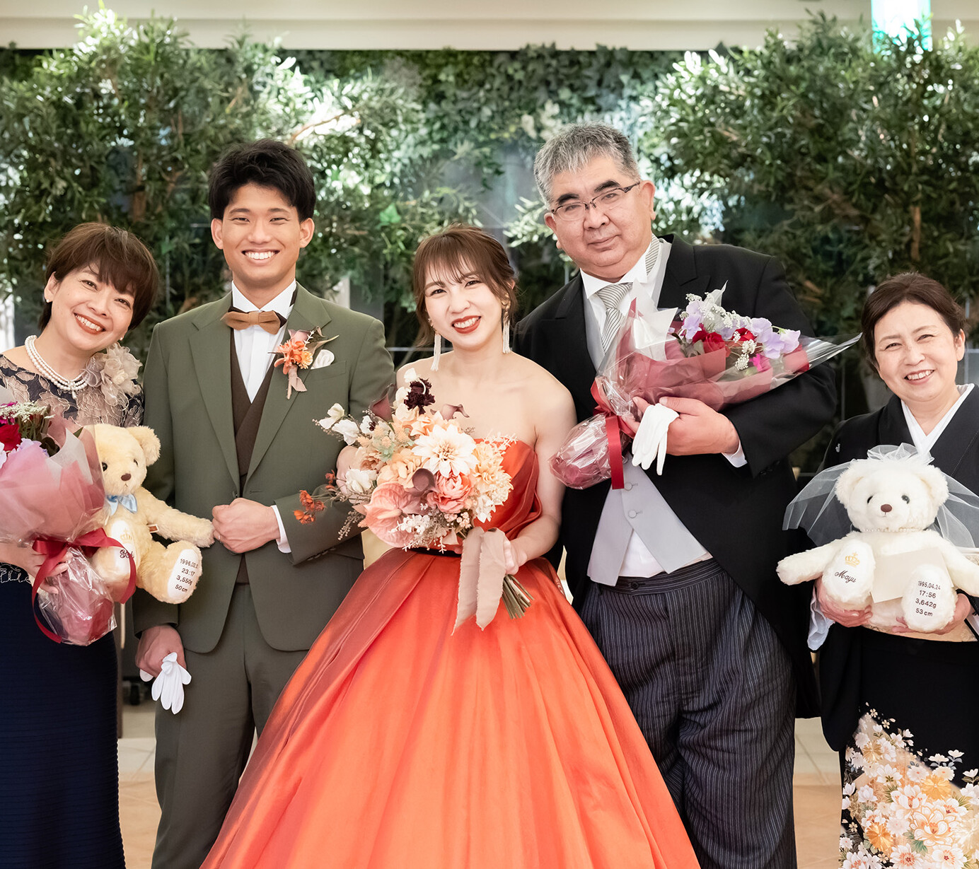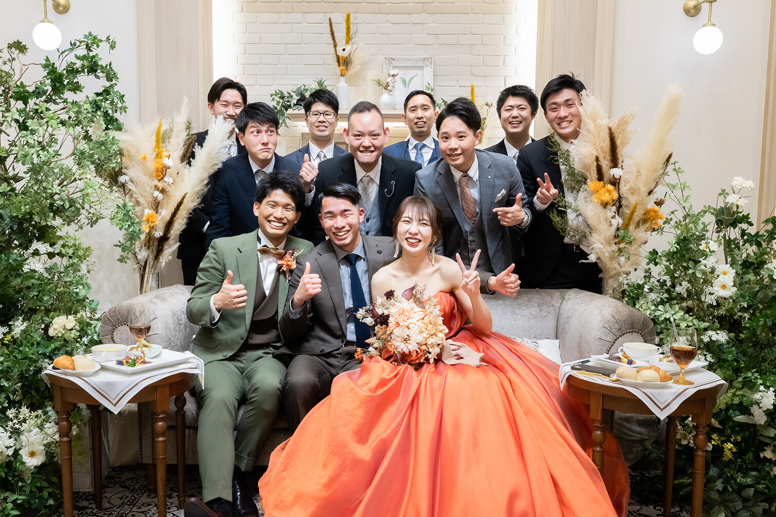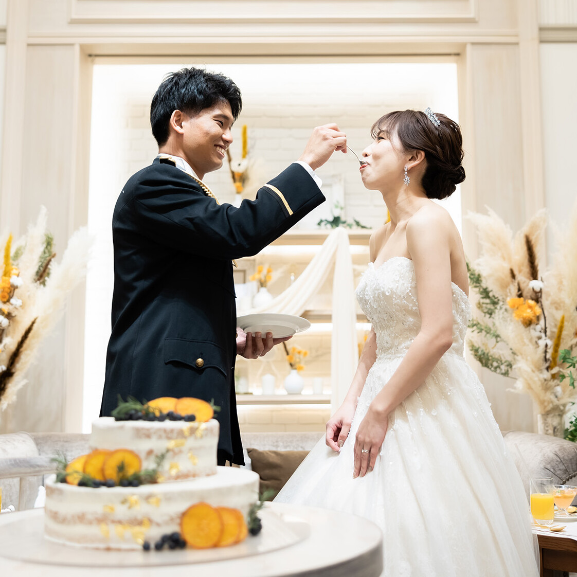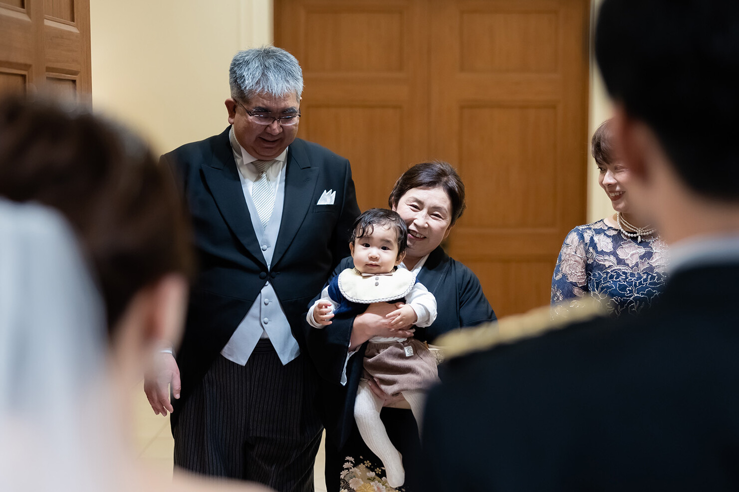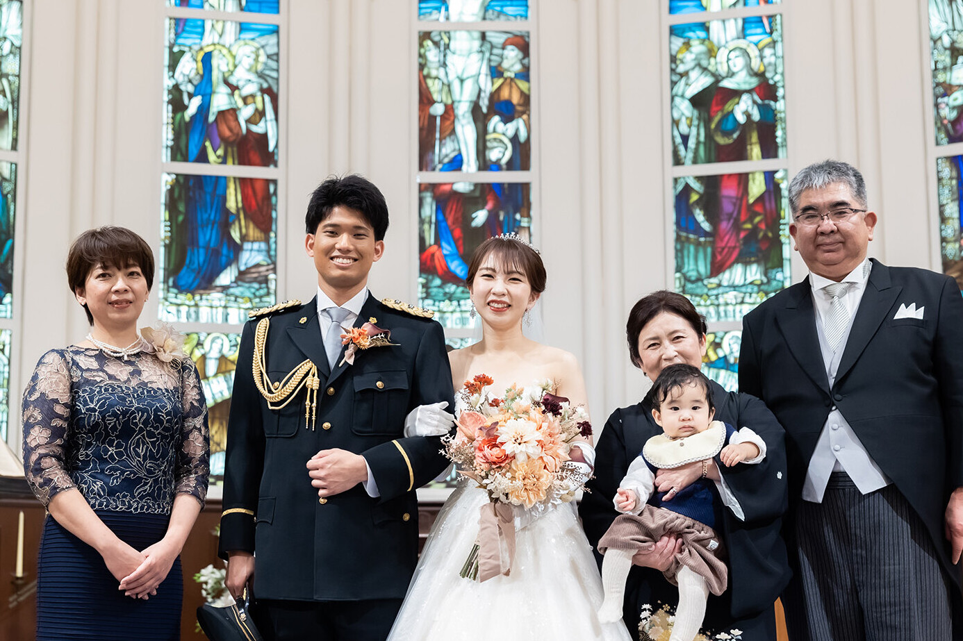おふたりには可愛い男の子が一人 ご結婚式当日も一緒に楽しみたい、それがおふたりの想いでした リングボーイやフラワーシャワーでの登場 ご披露宴でのお席もソファスタイルに変え、 できる限り一緒に過ごせるようにされました また、ケーキや装花、席次表など細部にも力を入れ こだわり抜いたご新婦 写真に映り込むアイテムはどれもお写真により華を添えてくれています