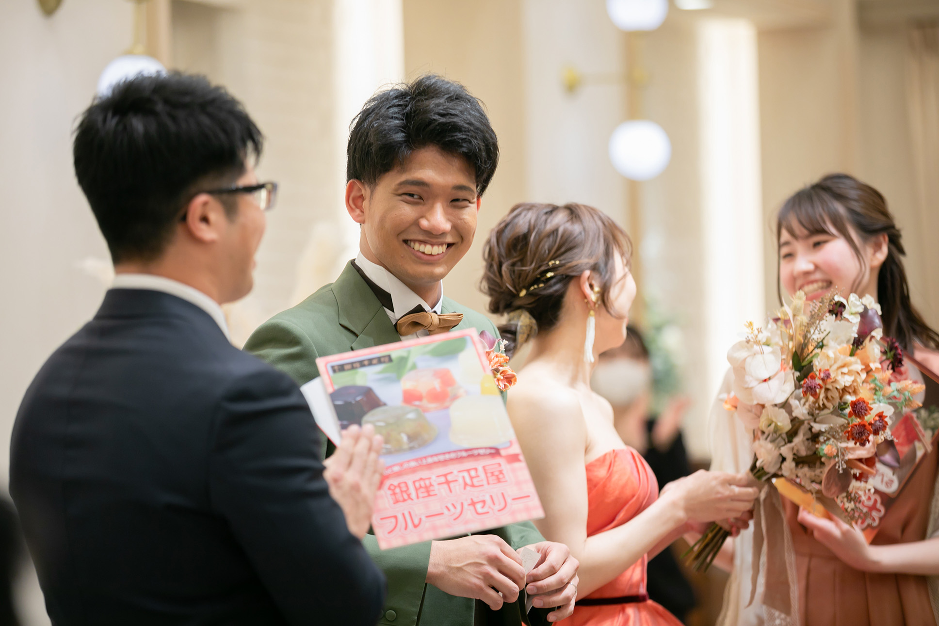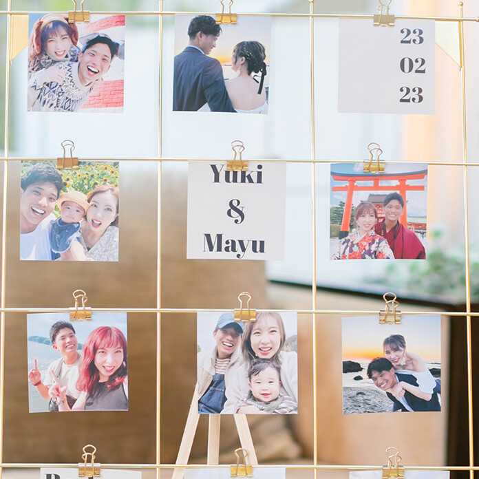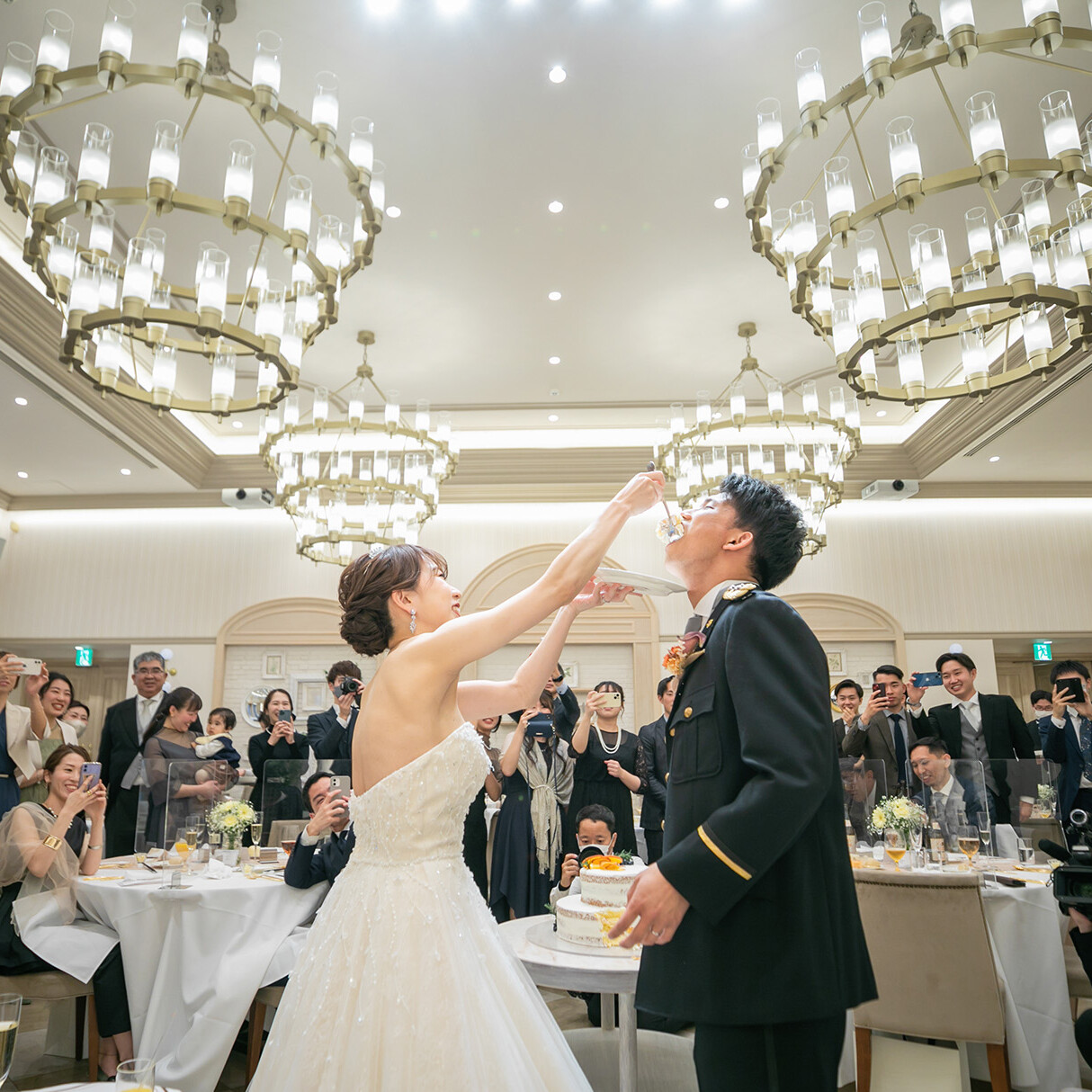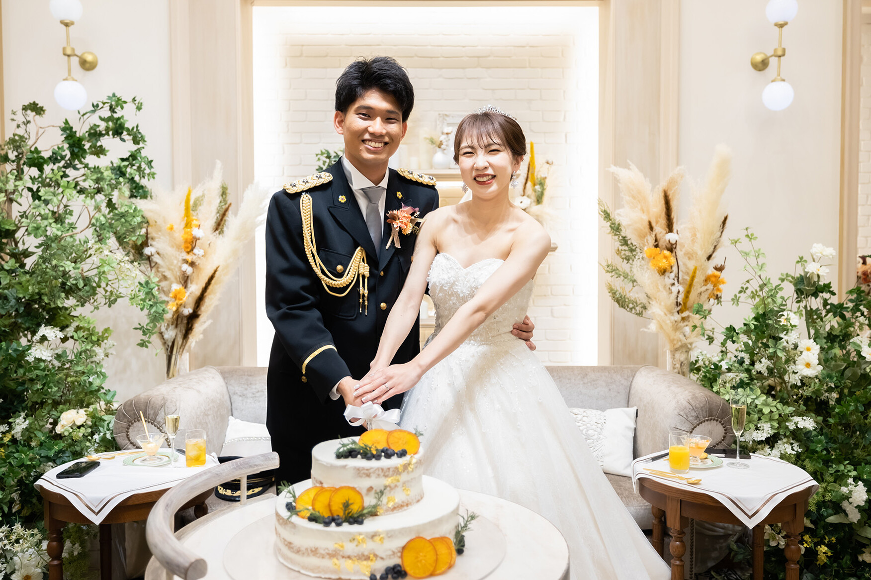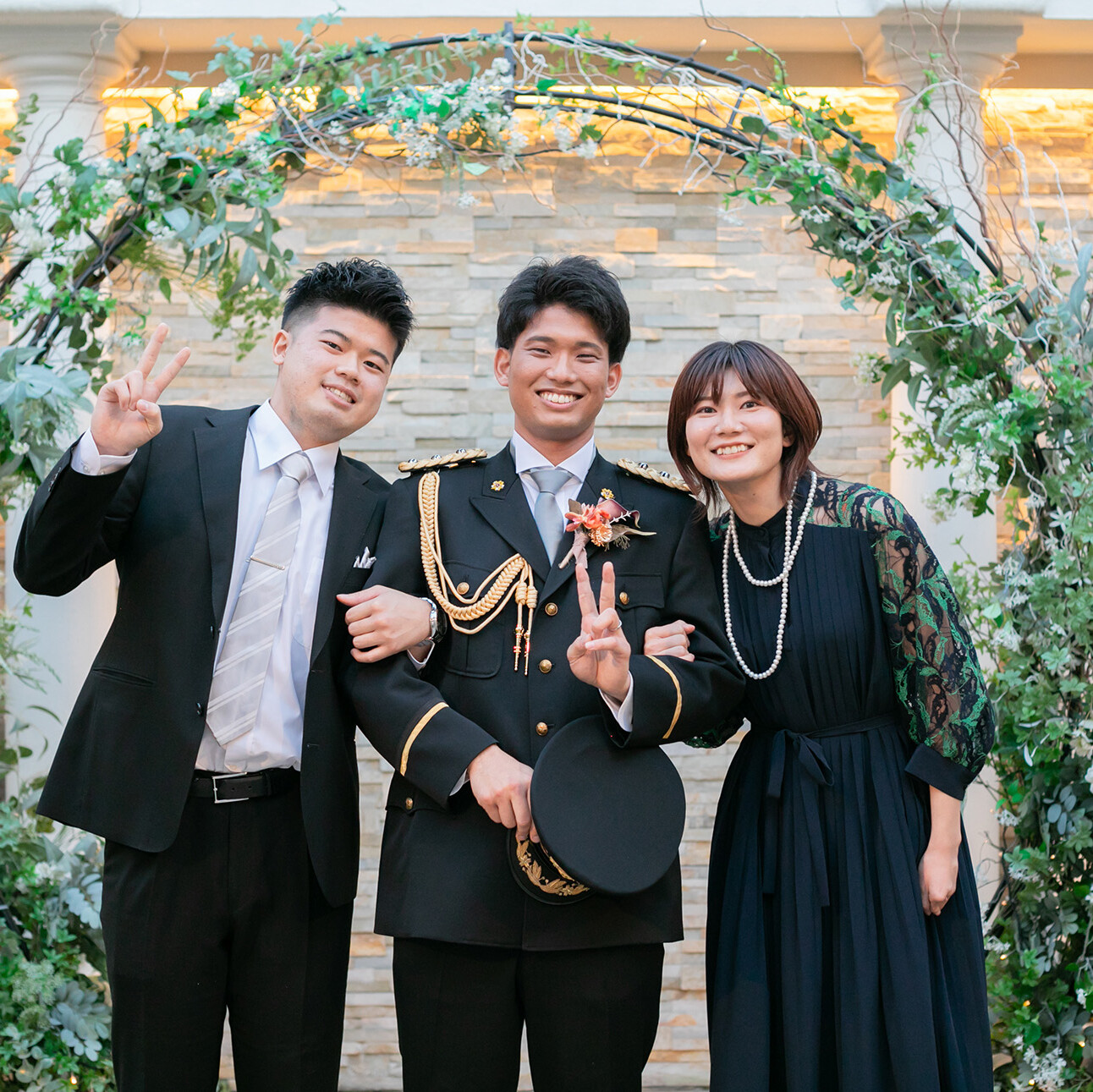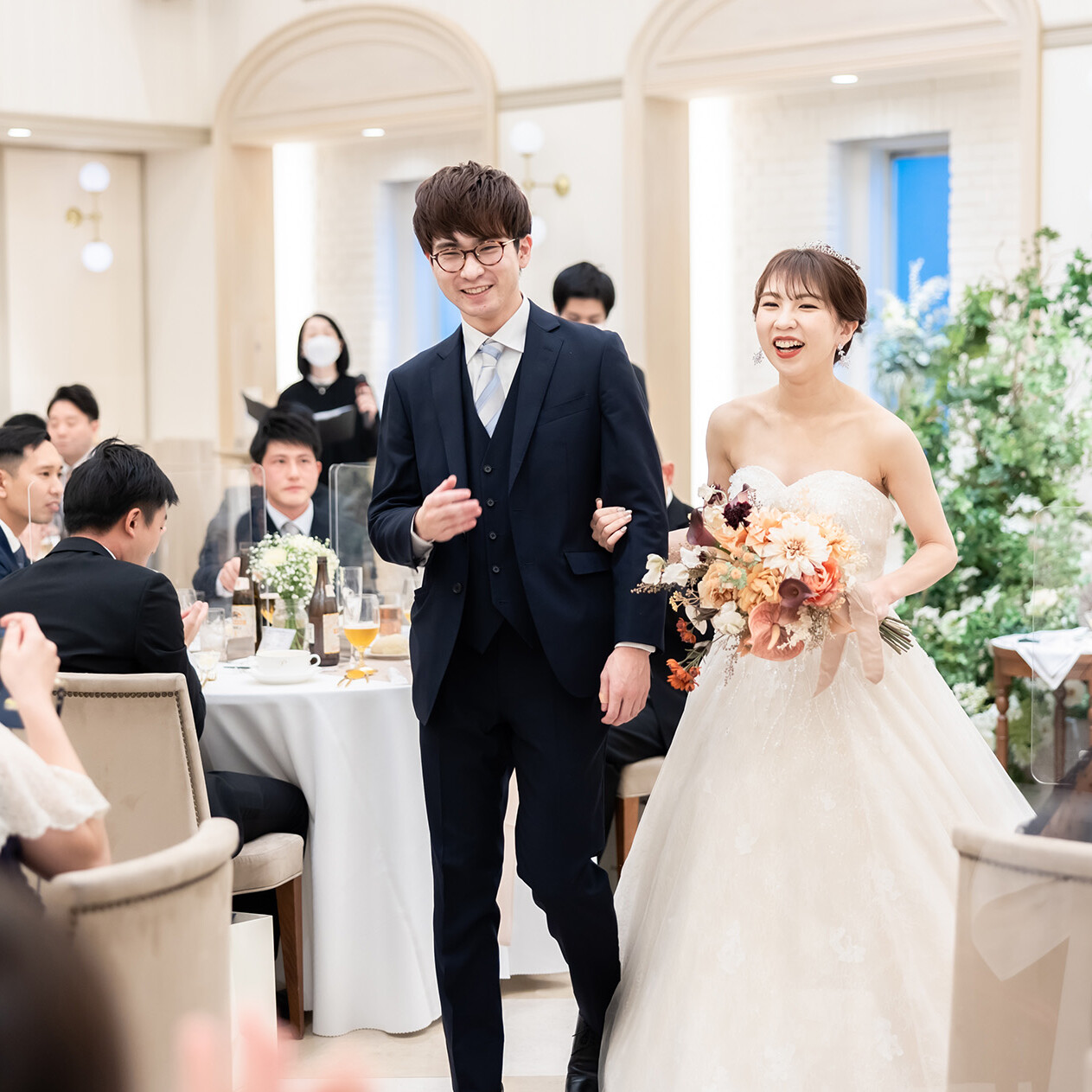 おふたりには可愛い男の子が一人 ご結婚式当日も一緒に楽しみたい、それがおふたりの想いでした リングボーイやフラワーシャワーでの登場 ご披露宴でのお席もソファスタイルに変え、 できる限り一緒に過ごせるようにされました また、ケーキや装花、席次表など細部にも力を入れ こだわり抜いたご新婦 写真に映り込むアイテムはどれもお写真により華を添えてくれています