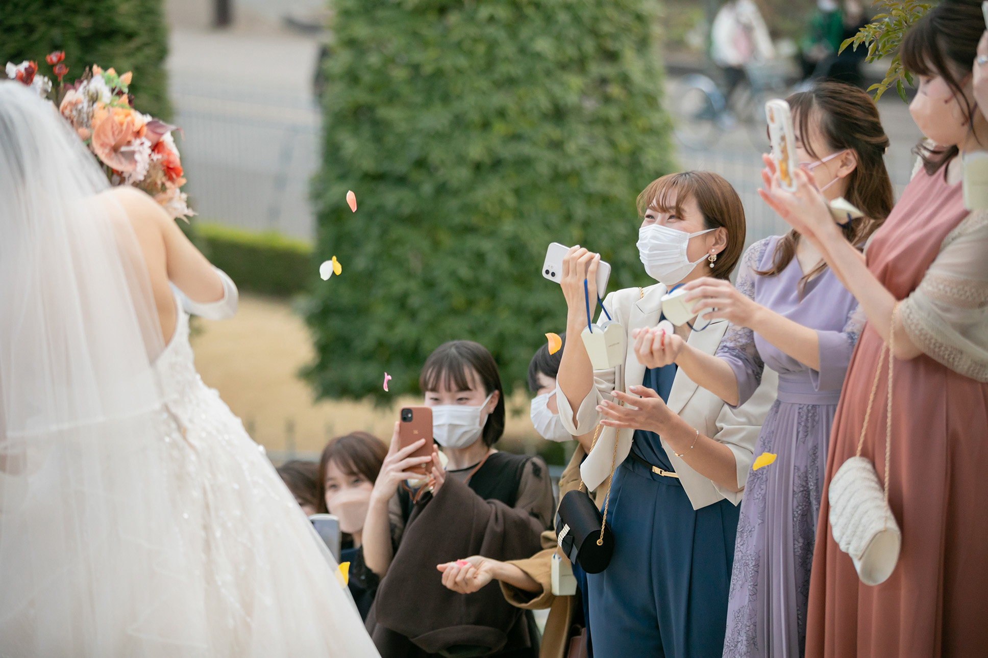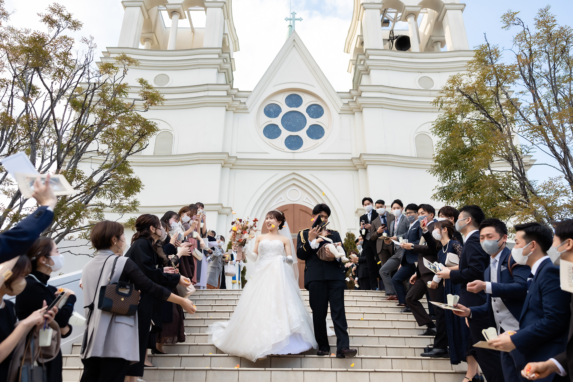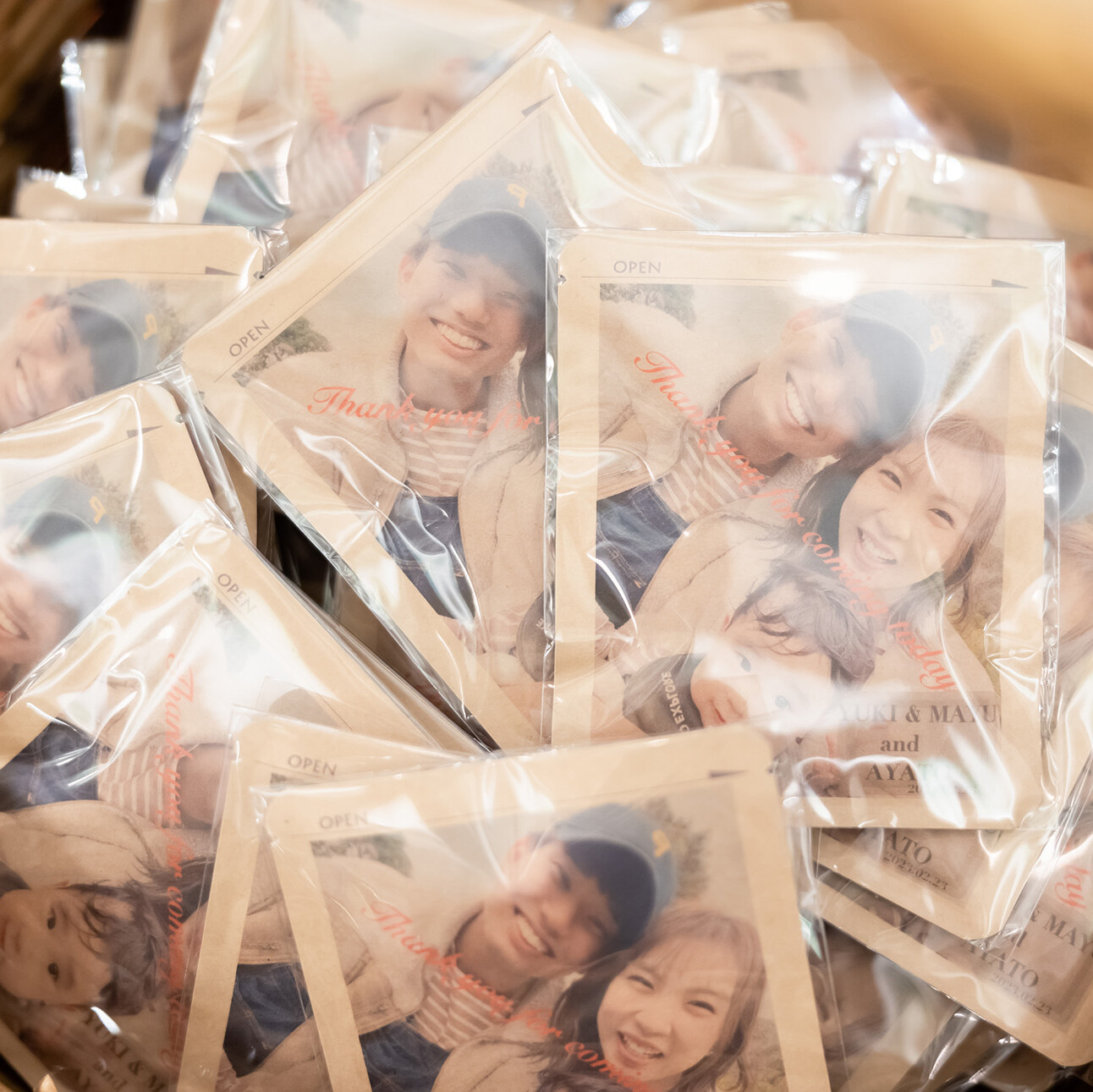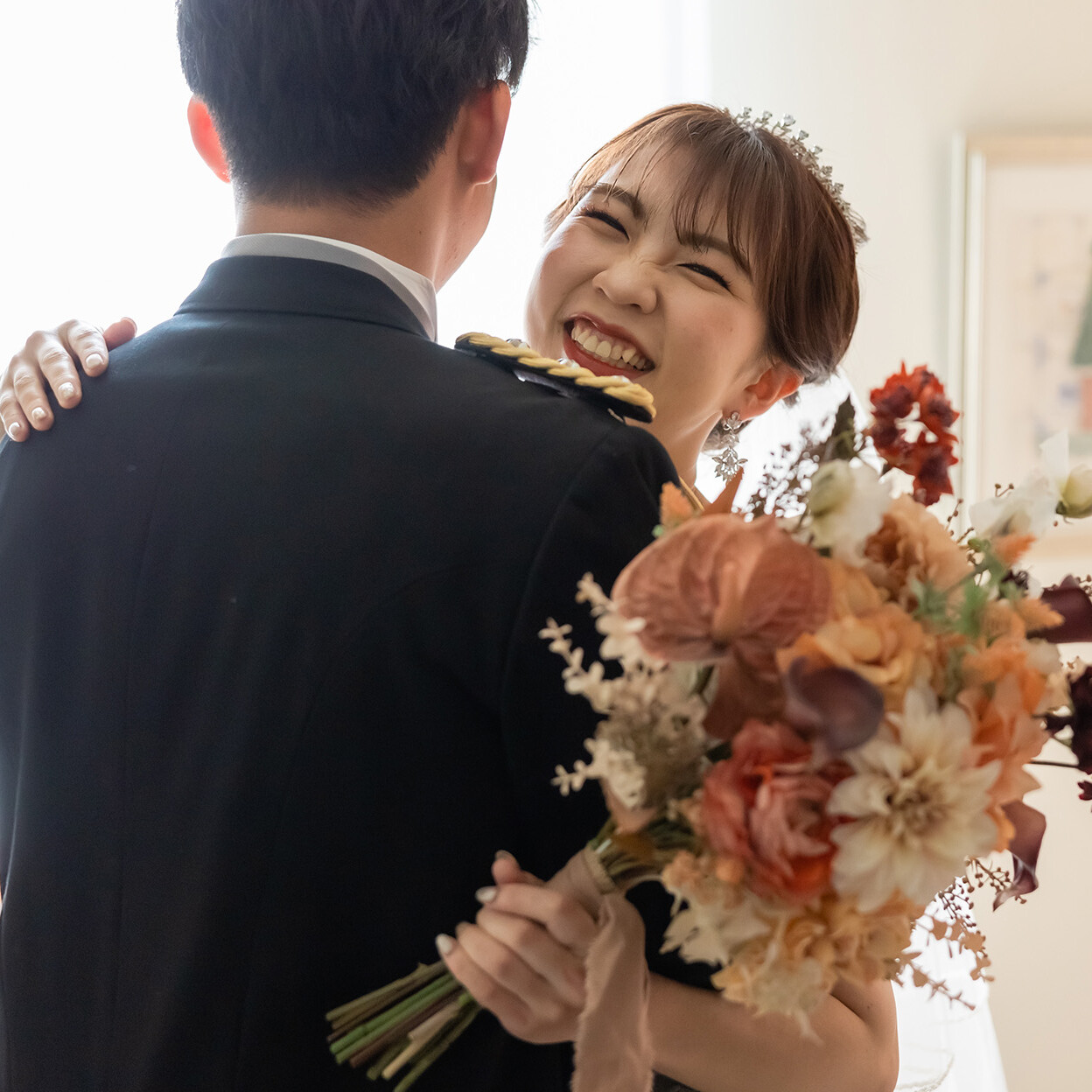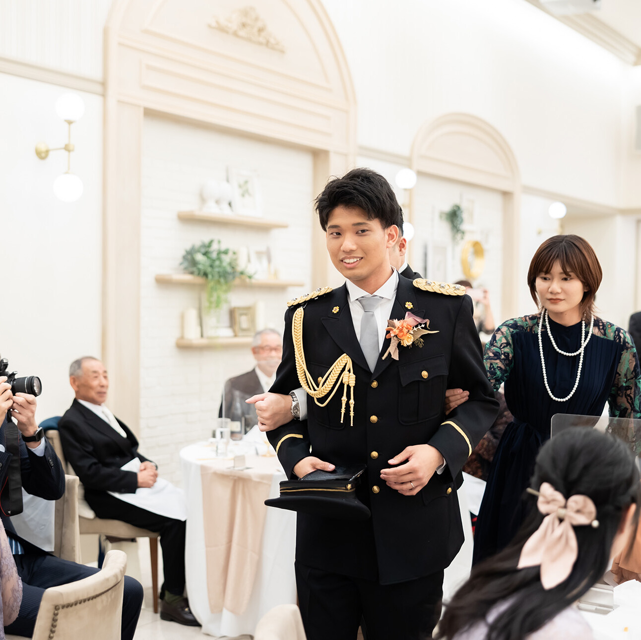 おふたりには可愛い男の子が一人 ご結婚式当日も一緒に楽しみたい、それがおふたりの想いでした リングボーイやフラワーシャワーでの登場 ご披露宴でのお席もソファスタイルに変え、 できる限り一緒に過ごせるようにされました また、ケーキや装花、席次表など細部にも力を入れ こだわり抜いたご新婦 写真に映り込むアイテムはどれもお写真により華を添えてくれています