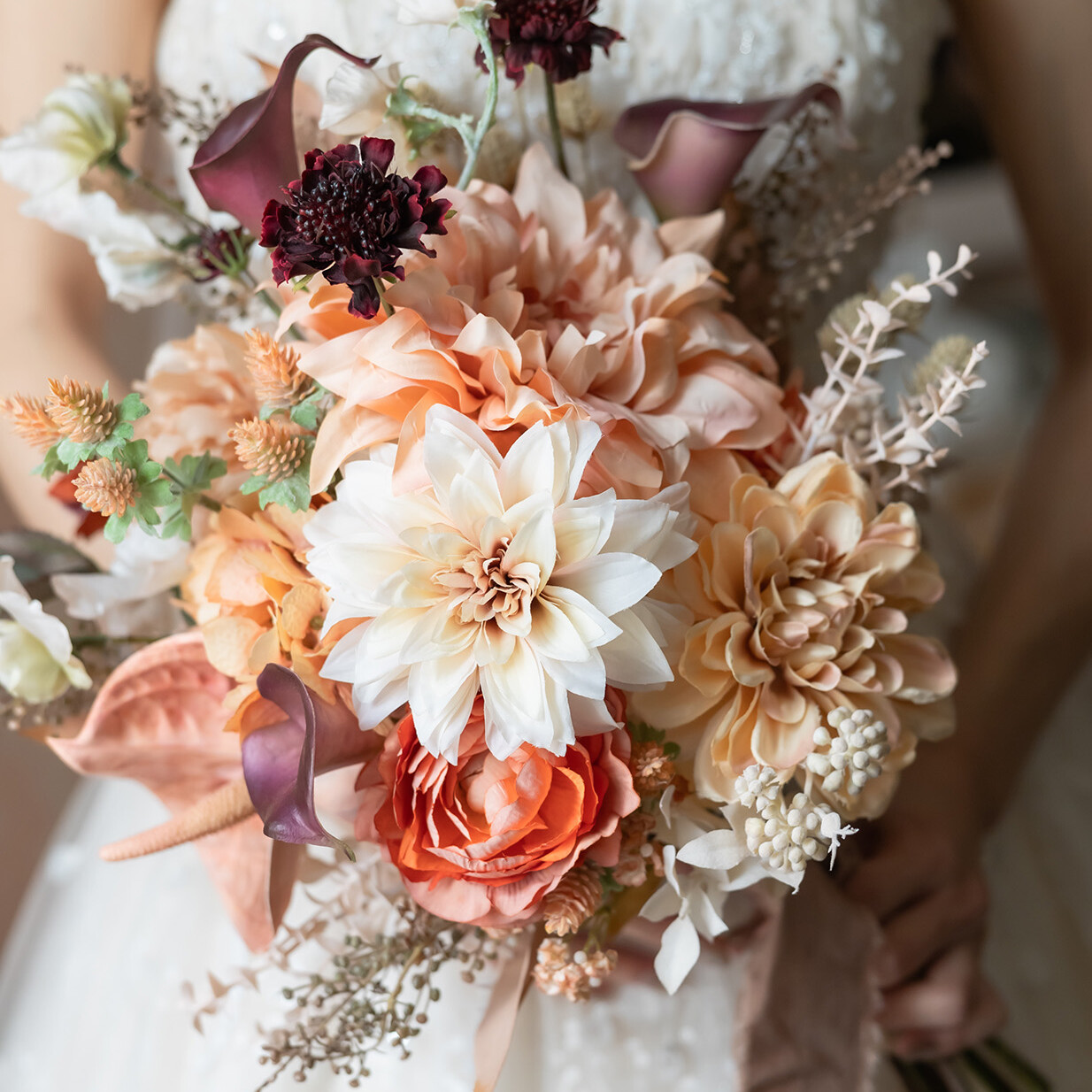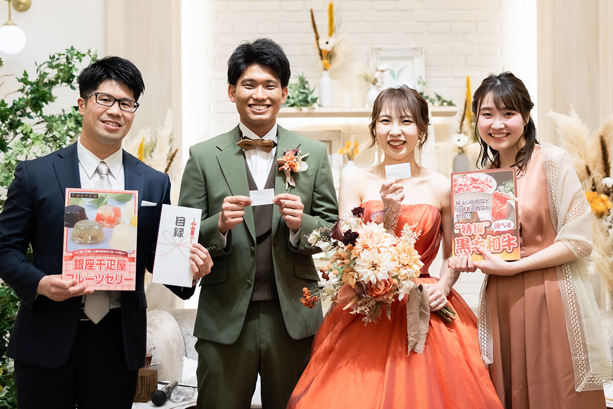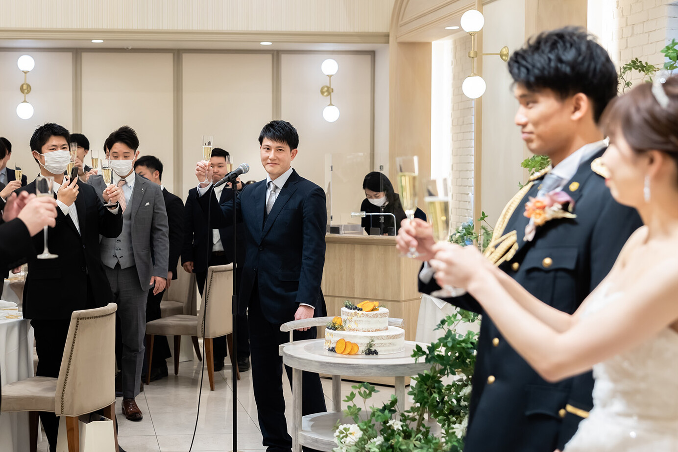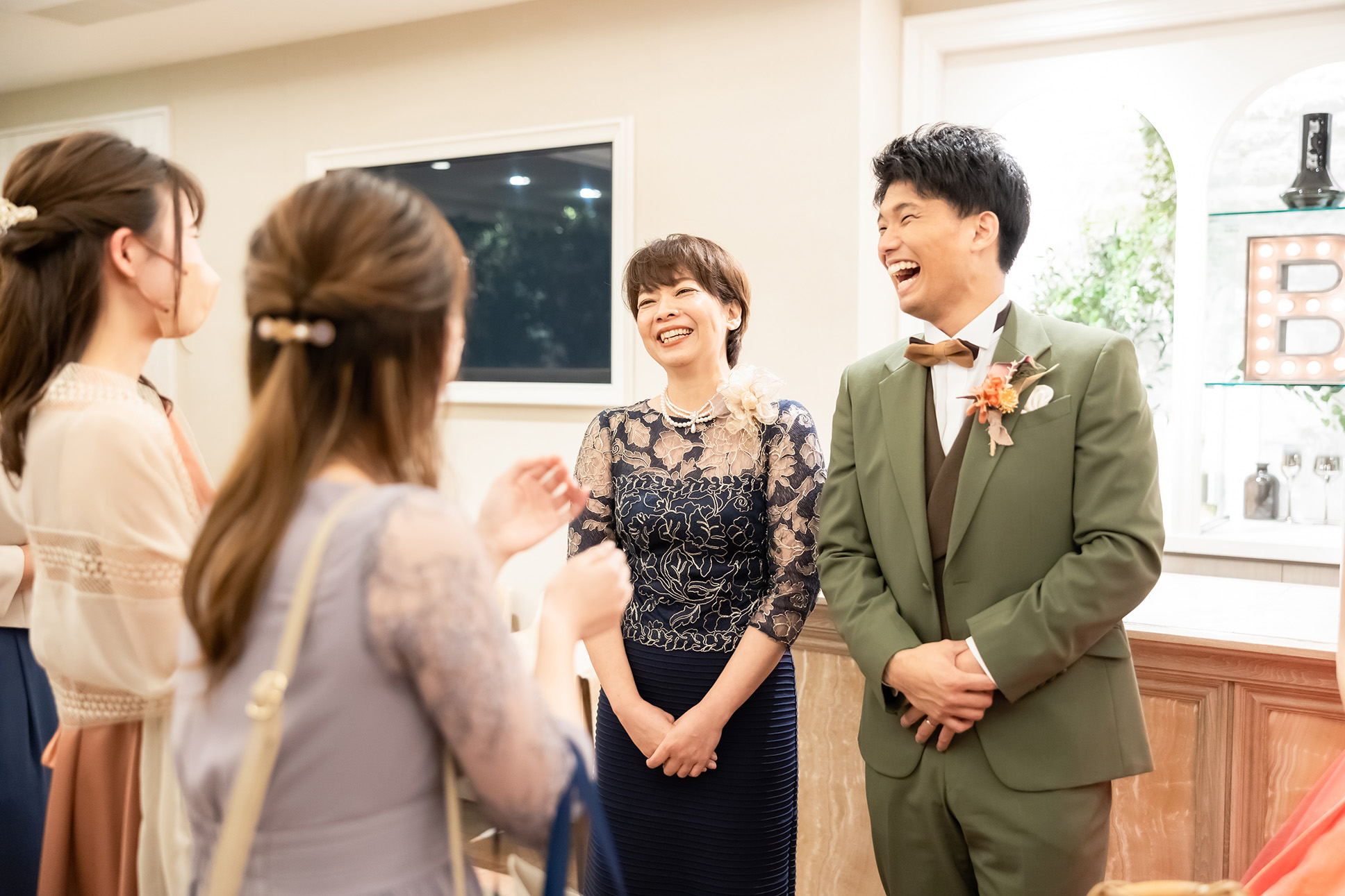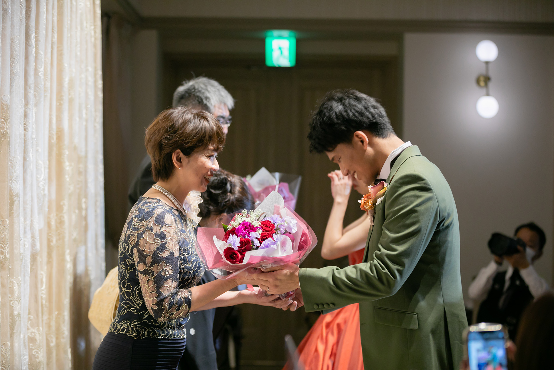おふたりには可愛い男の子が一人 ご結婚式当日も一緒に楽しみたい、それがおふたりの想いでした リングボーイやフラワーシャワーでの登場 ご披露宴でのお席もソファスタイルに変え、 できる限り一緒に過ごせるようにされました また、ケーキや装花、席次表など細部にも力を入れ こだわり抜いたご新婦 写真に映り込むアイテムはどれもお写真により華を添えてくれています