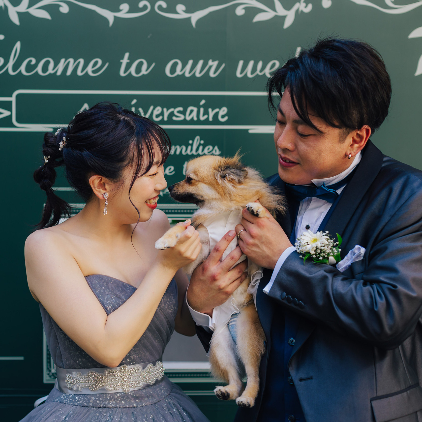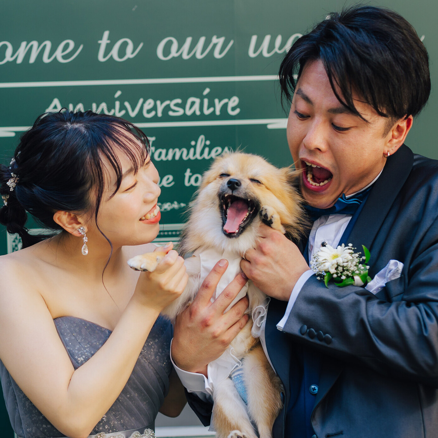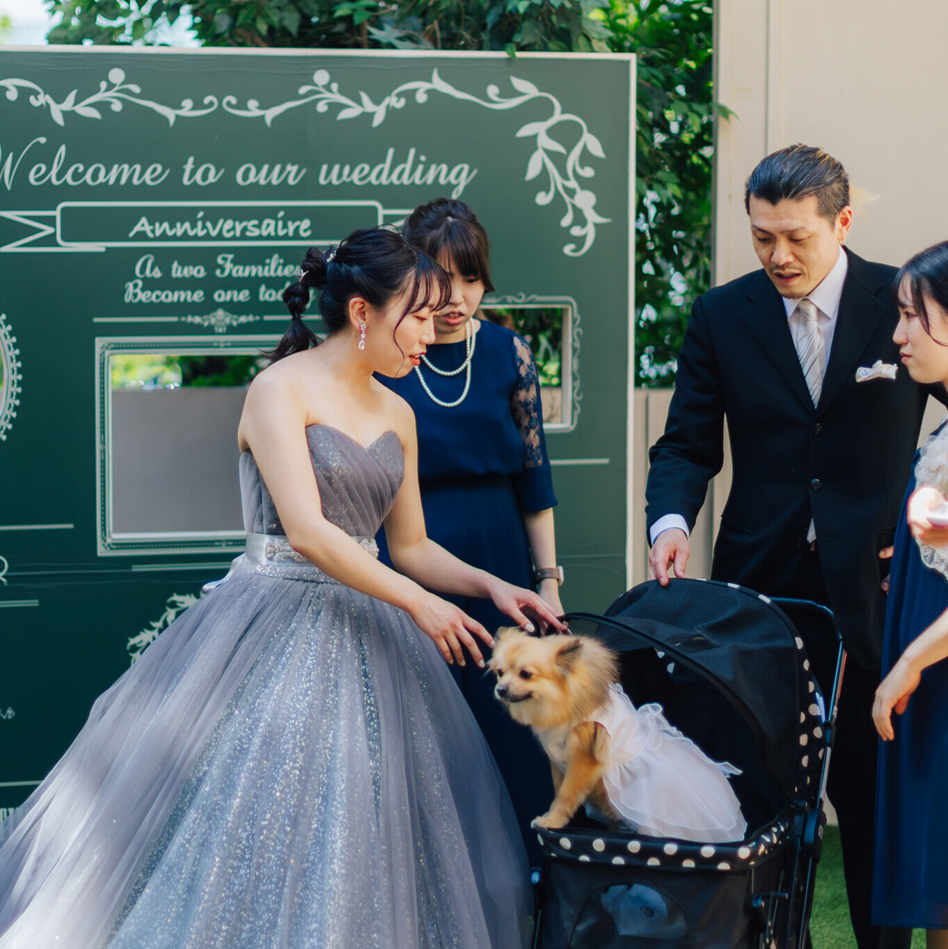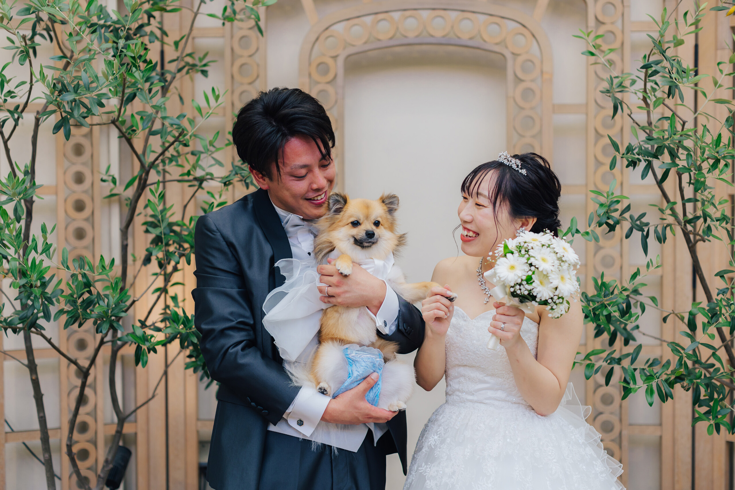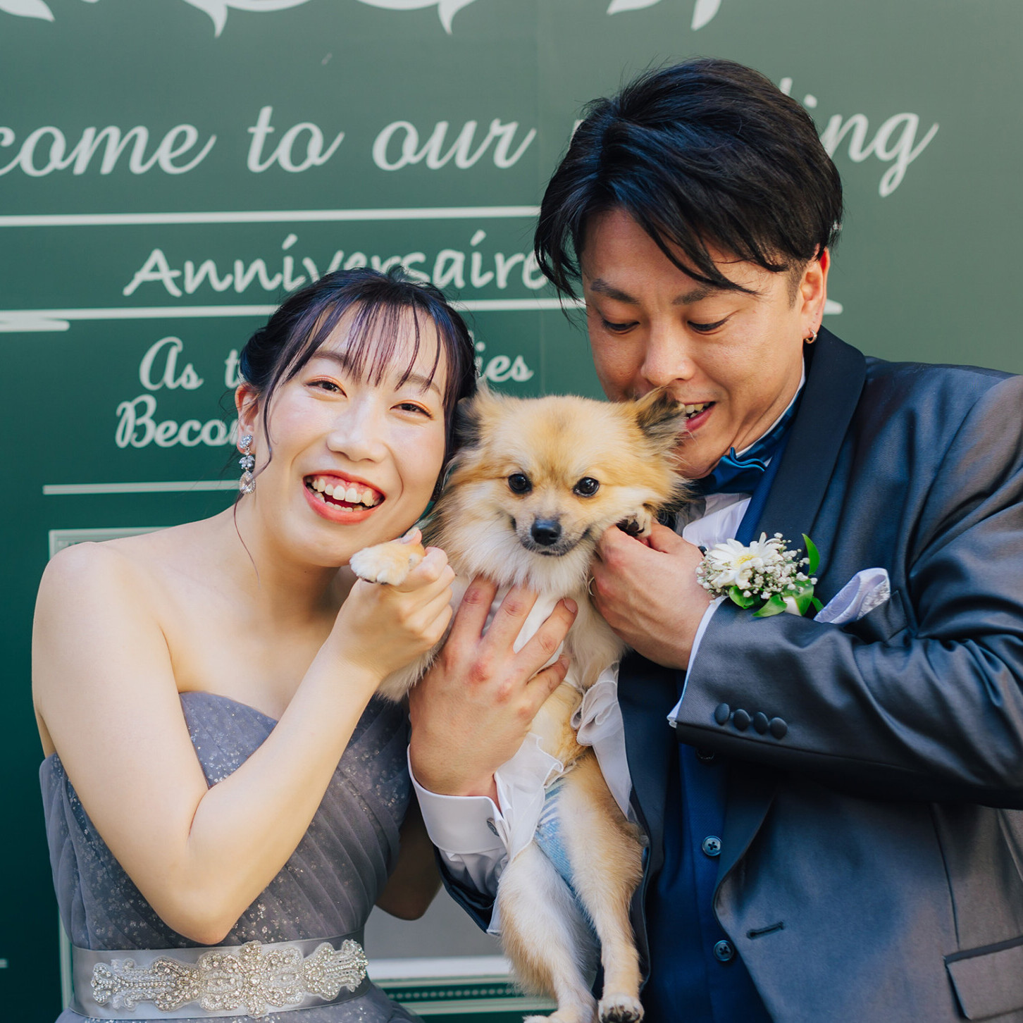 ポメラニアンの「ういちゃん」と一緒に叶えるご結婚式 リングドックや肉球署名、披露宴の時間もガーデンパーティを行い お庭で写真を撮って一緒に過ごしました