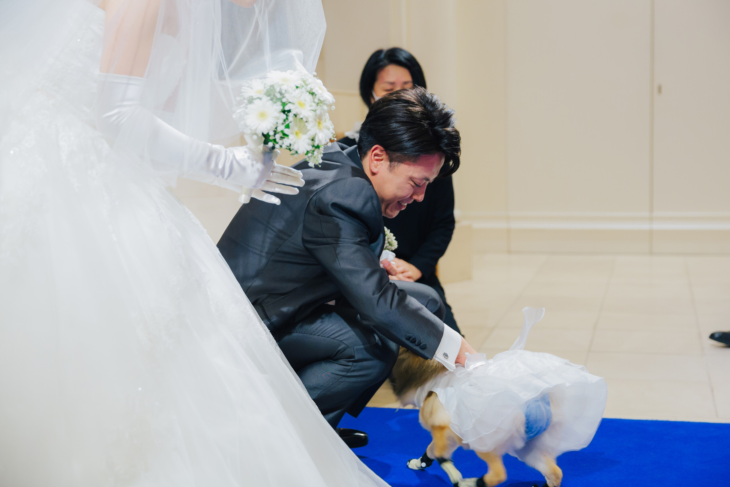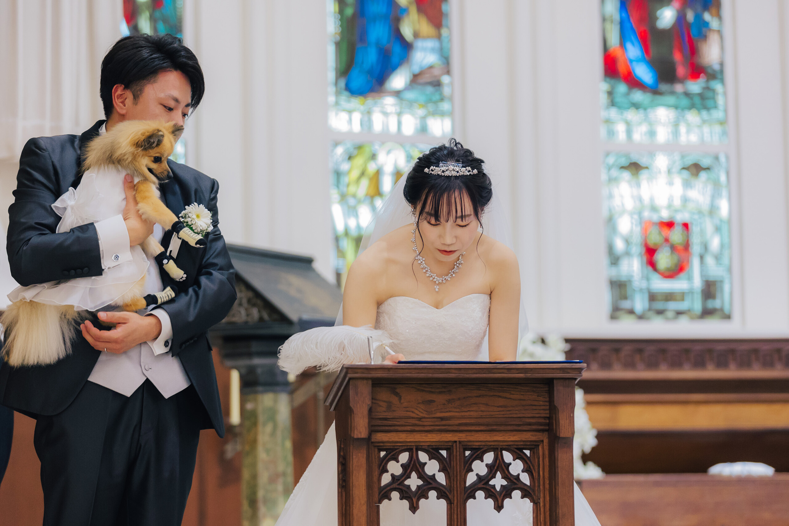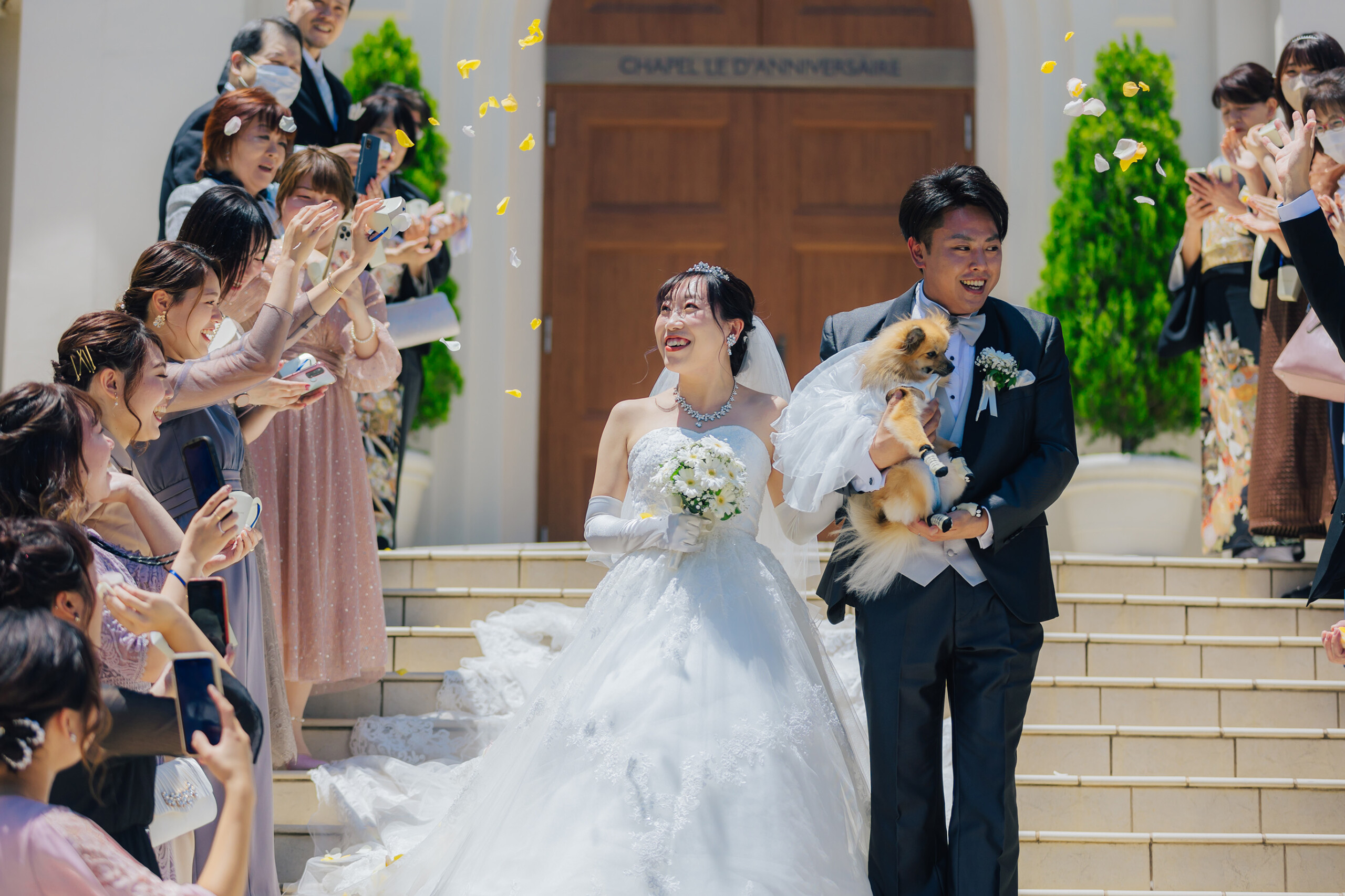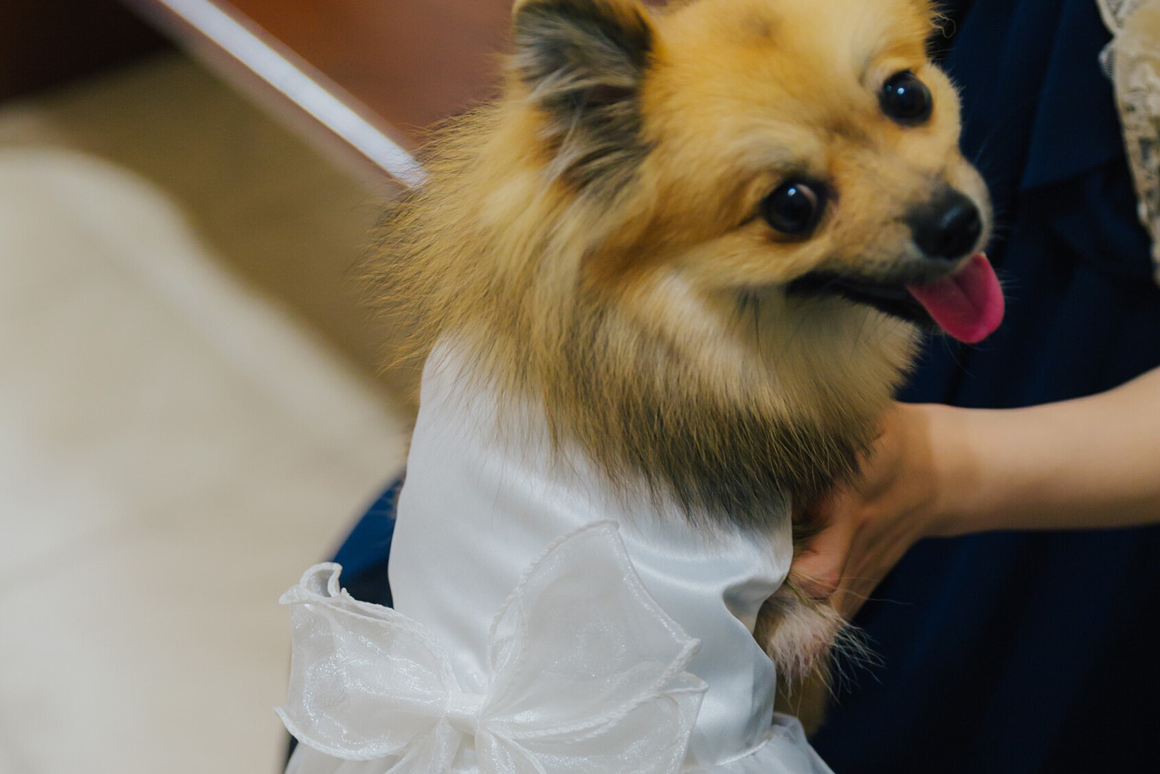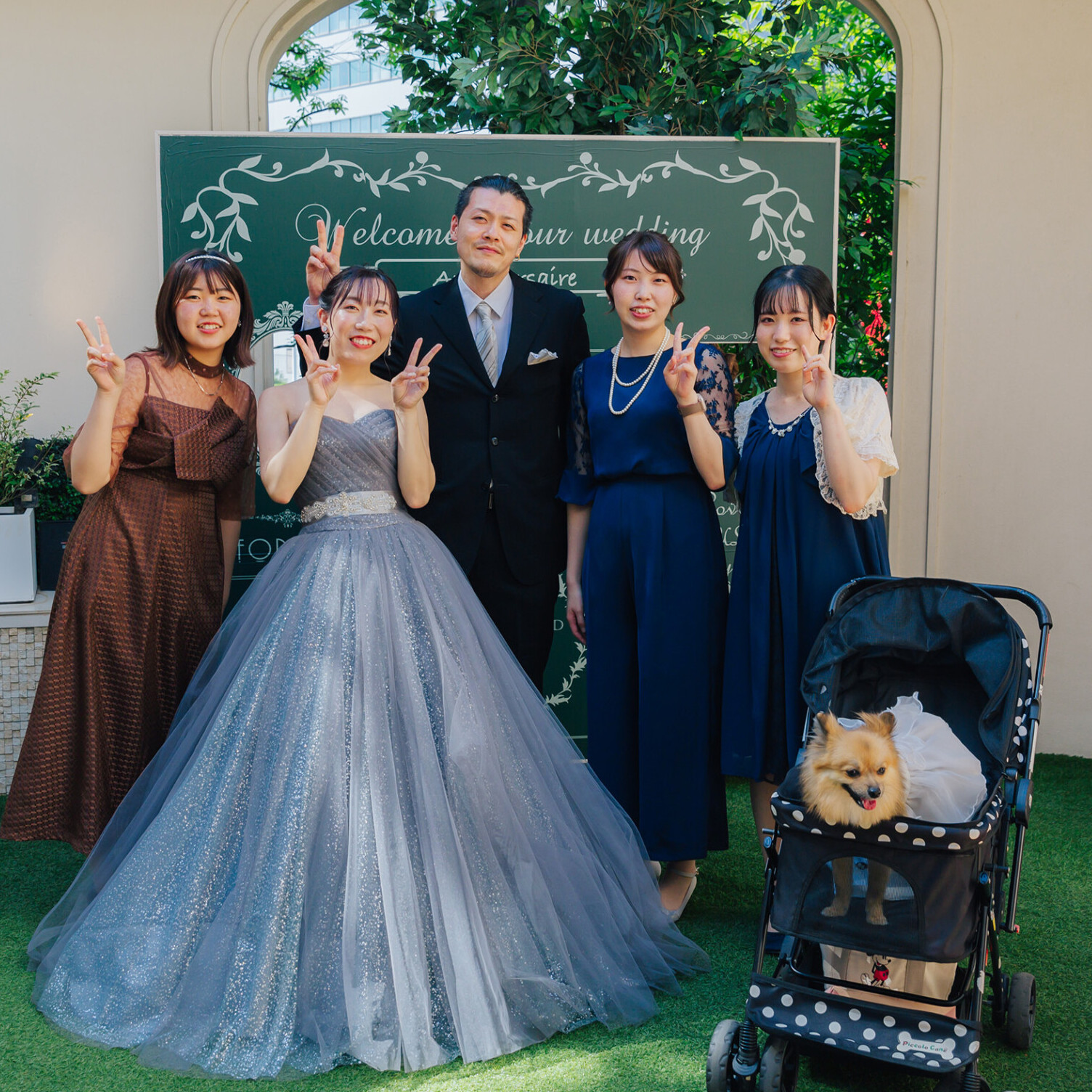ポメラニアンの「ういちゃん」と一緒に叶えるご結婚式 リングドックや肉球署名、披露宴の時間もガーデンパーティを行い お庭で写真を撮って一緒に過ごしました