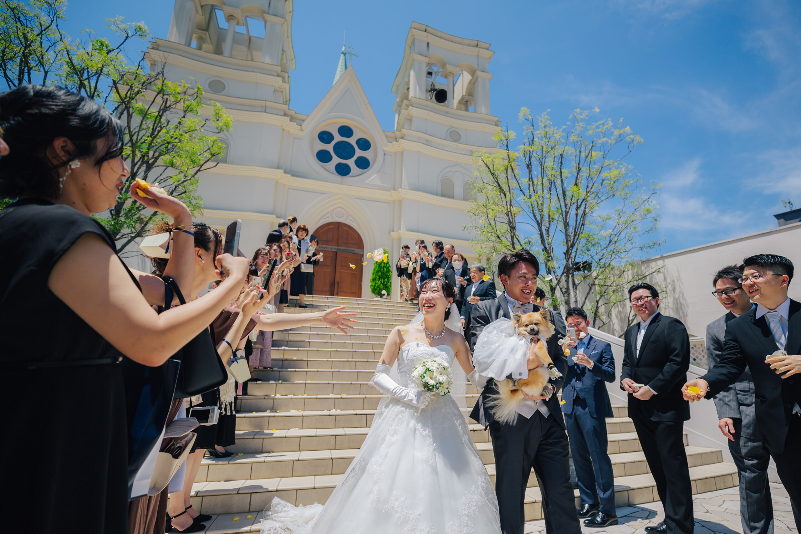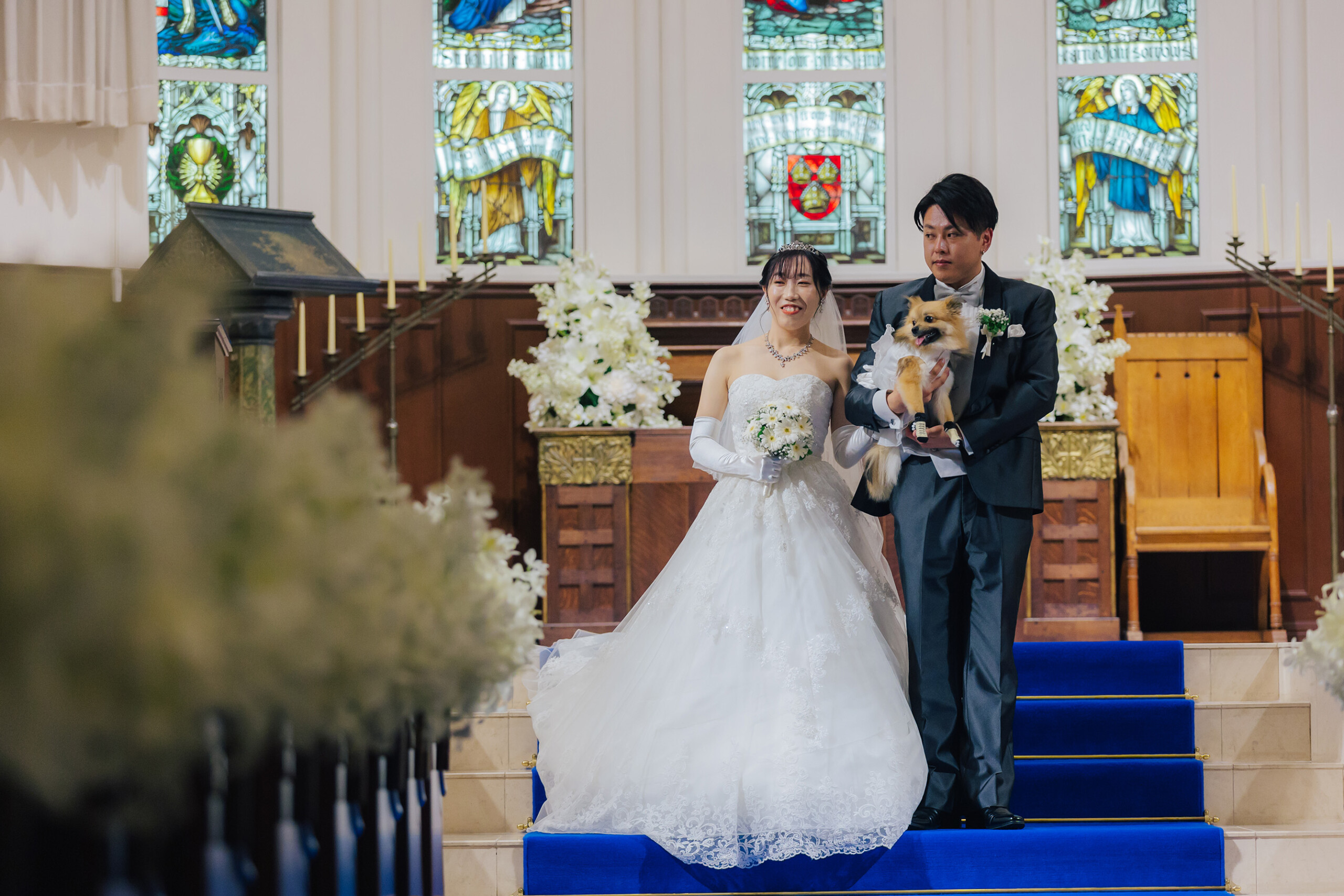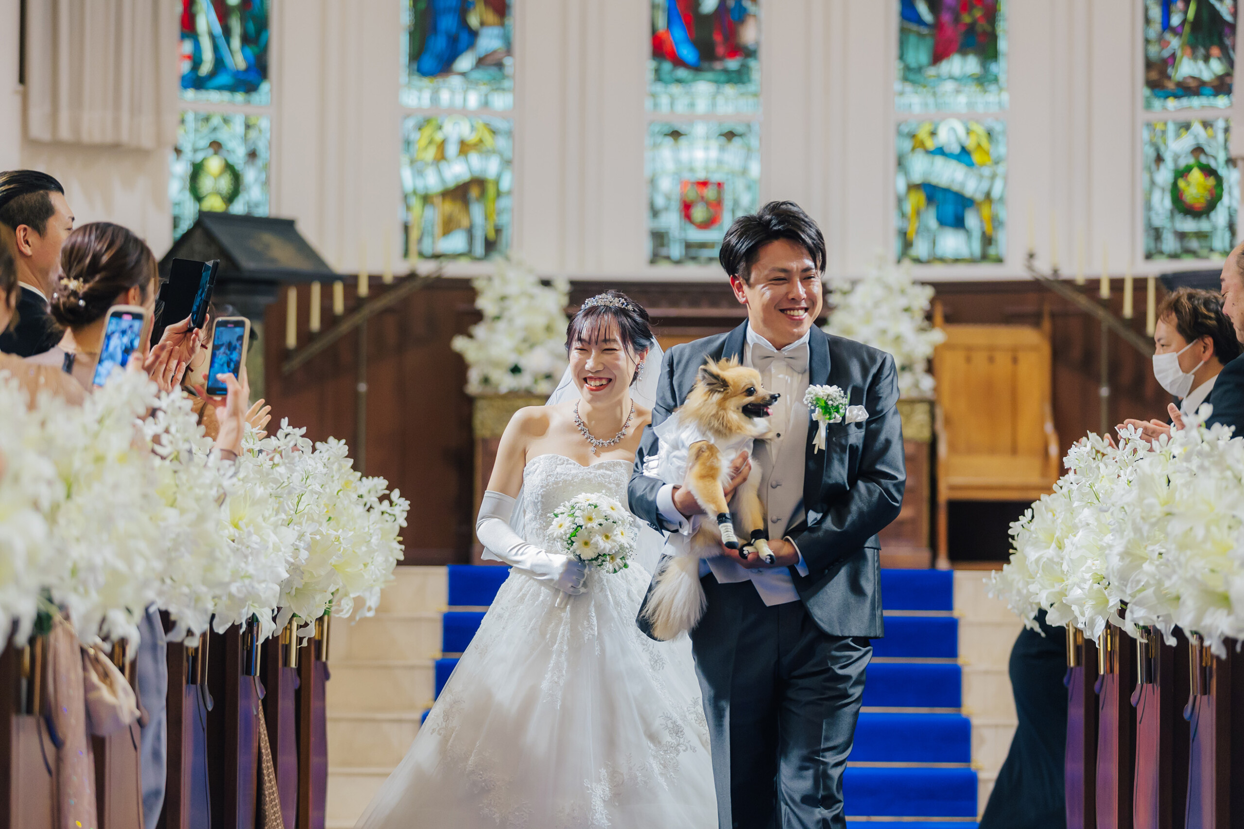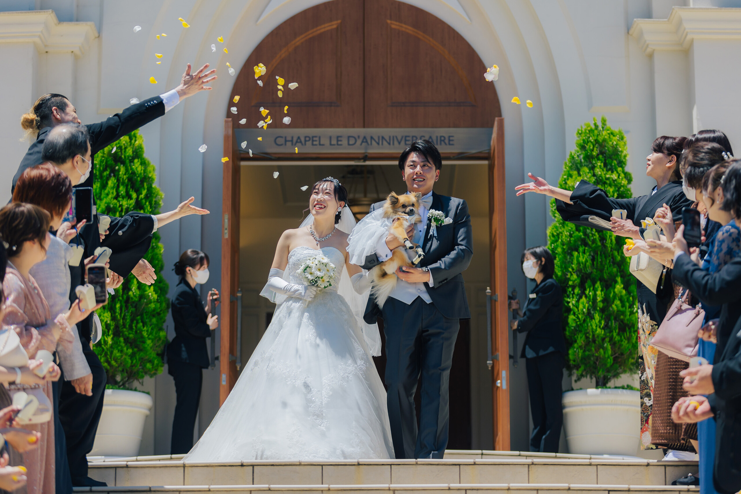 ポメラニアンの「ういちゃん」と一緒に叶えるご結婚式 リングドックや肉球署名、披露宴の時間もガーデンパーティを行い お庭で写真を撮って一緒に過ごしました