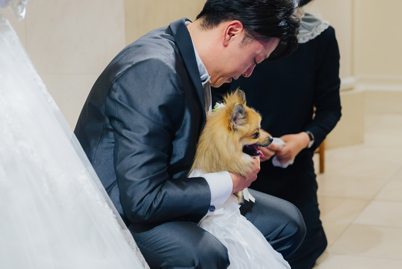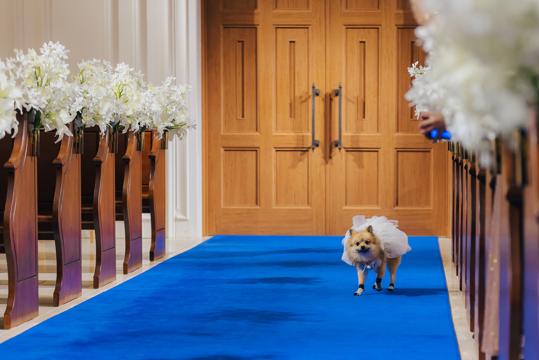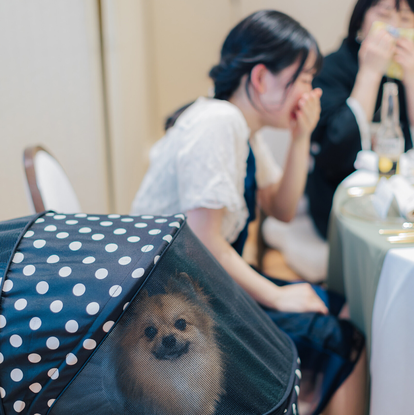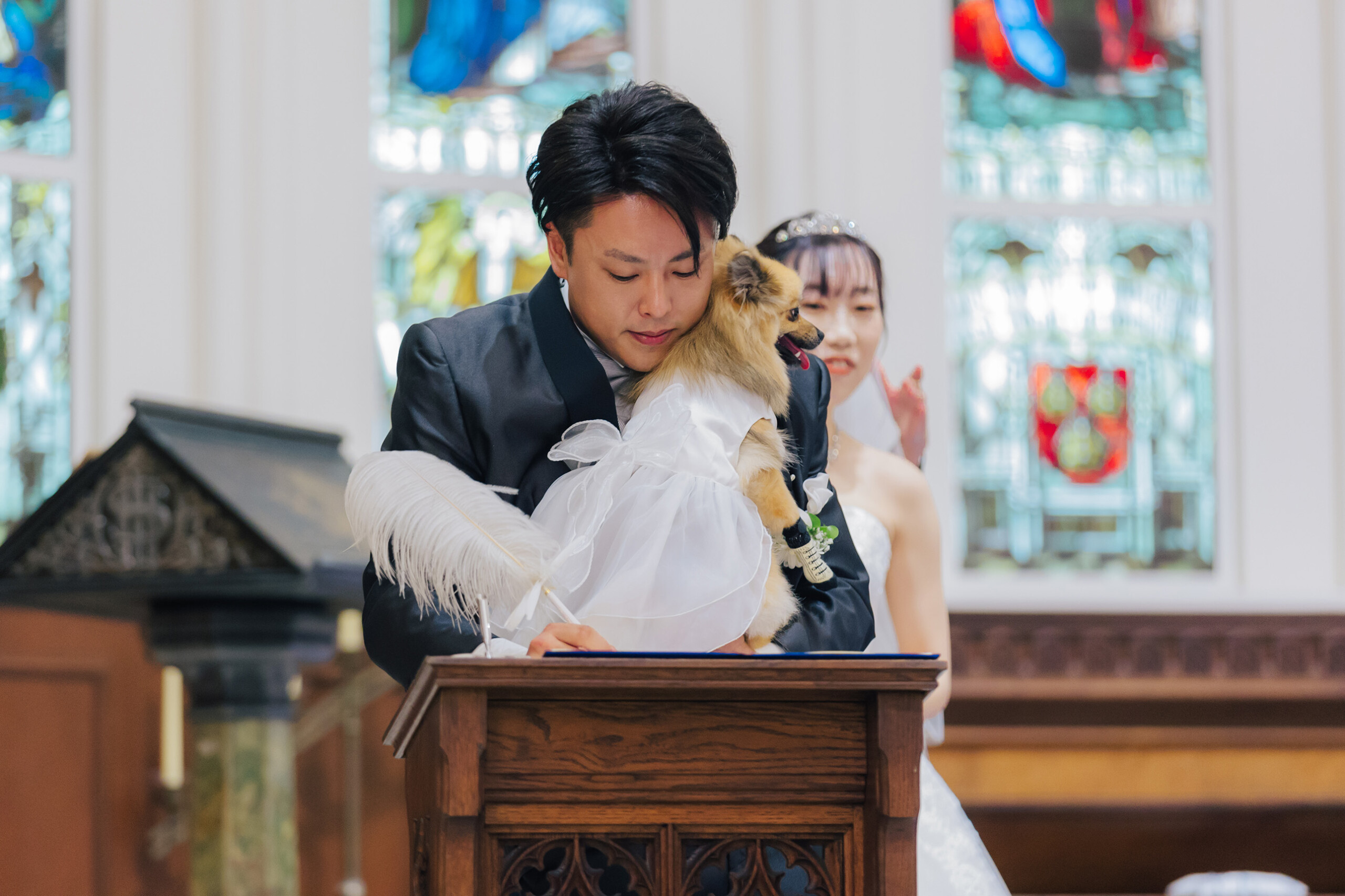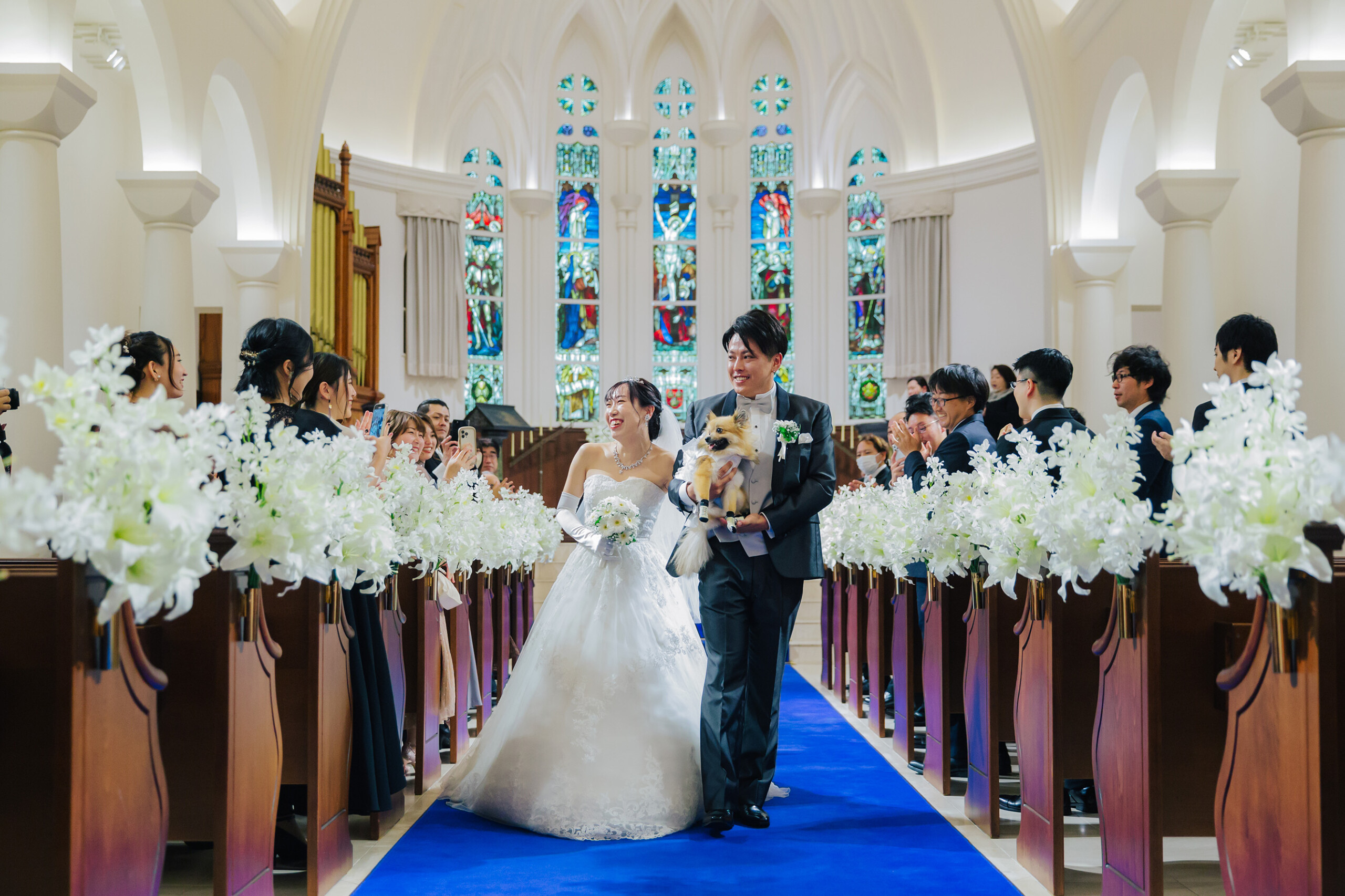 ポメラニアンの「ういちゃん」と一緒に叶えるご結婚式 リングドックや肉球署名、披露宴の時間もガーデンパーティを行い お庭で写真を撮って一緒に過ごしました