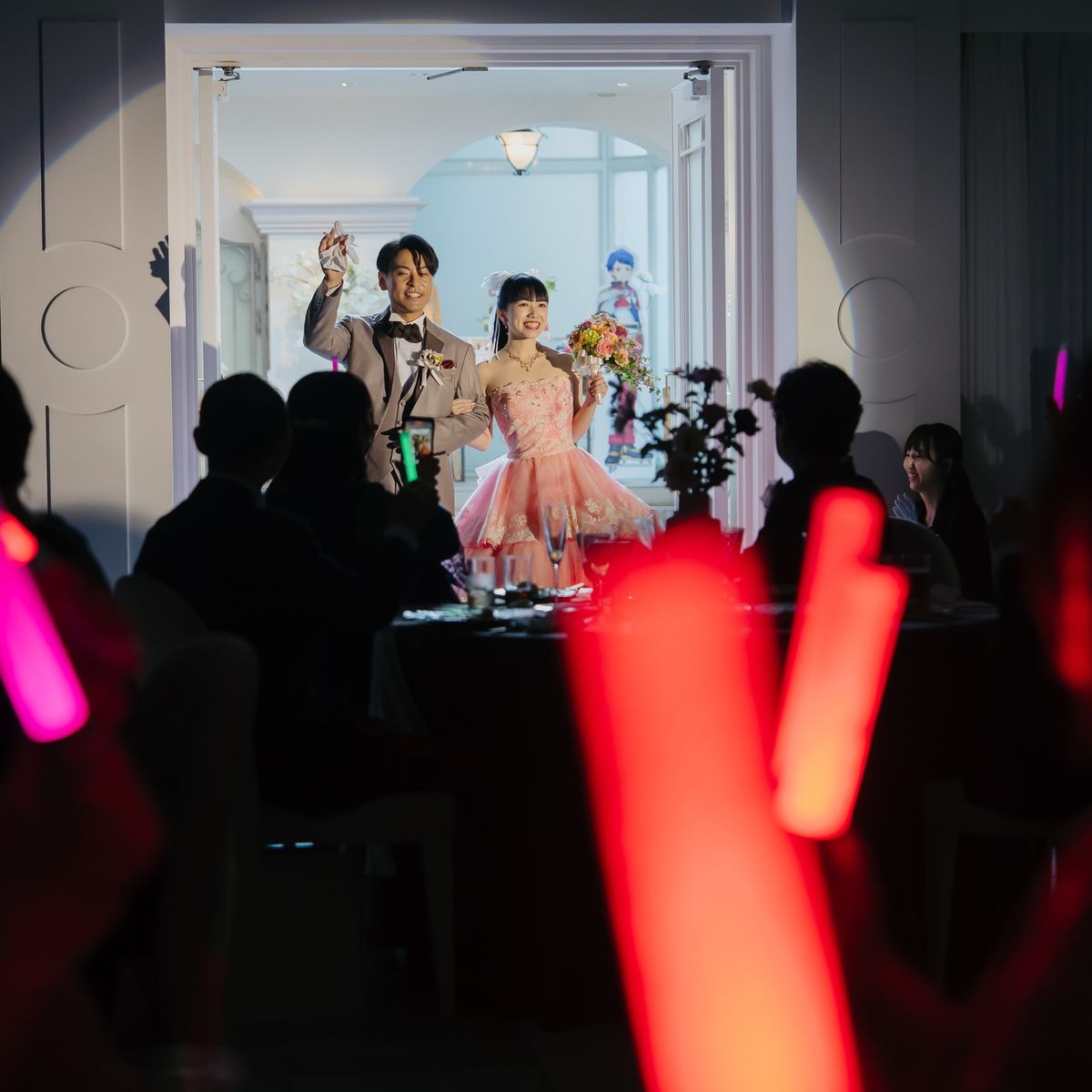 「ゲストも自分たちも楽しめるように」と演出を工夫したおふたり。さらにご新婦の好きな作品の『KING OF PRISM』の要素をたくさん取り入れ、煌めきと笑顔が溢れた空間になりました。