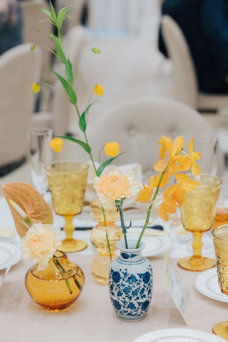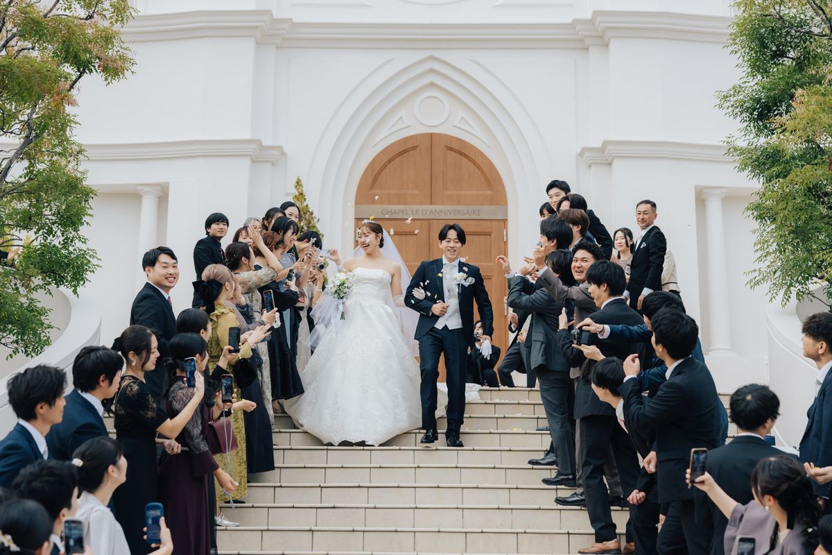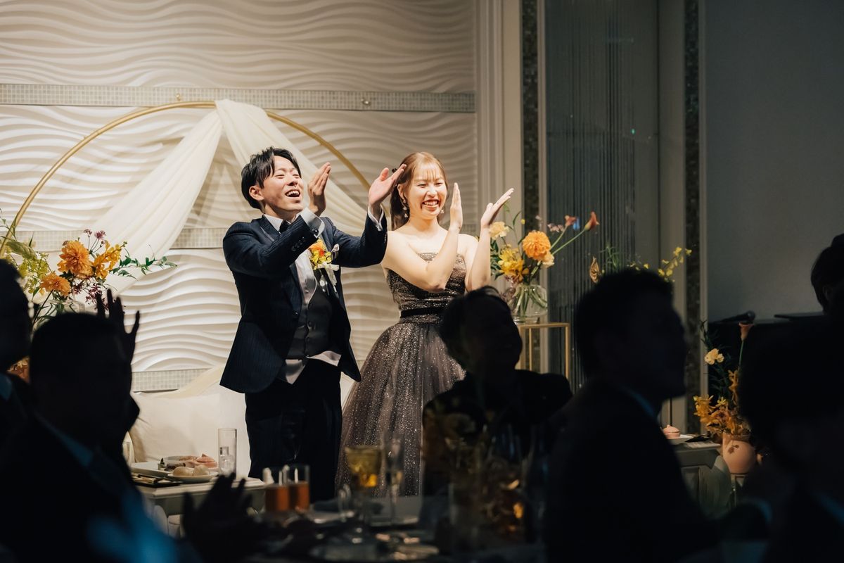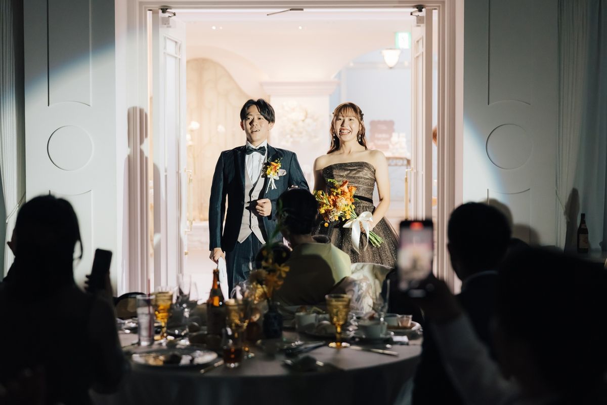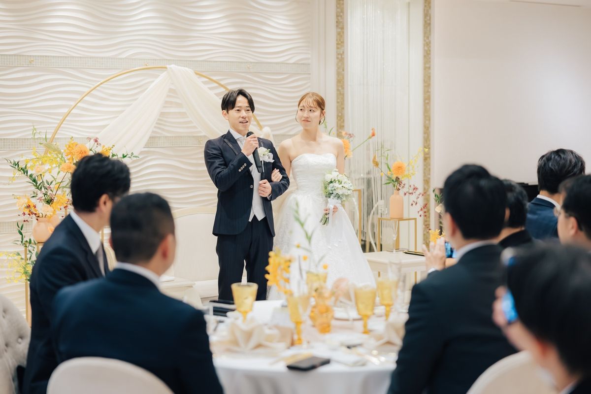 職業柄、子供たちから「なっちゃん先生」と呼ばれているご新婦のイメージカラーはオレンジ色。会場装花やブーケにオレンジ色をあしらい、おふたりの人柄が表れた、明るく笑顔いっぱいの結婚式を実現されました。