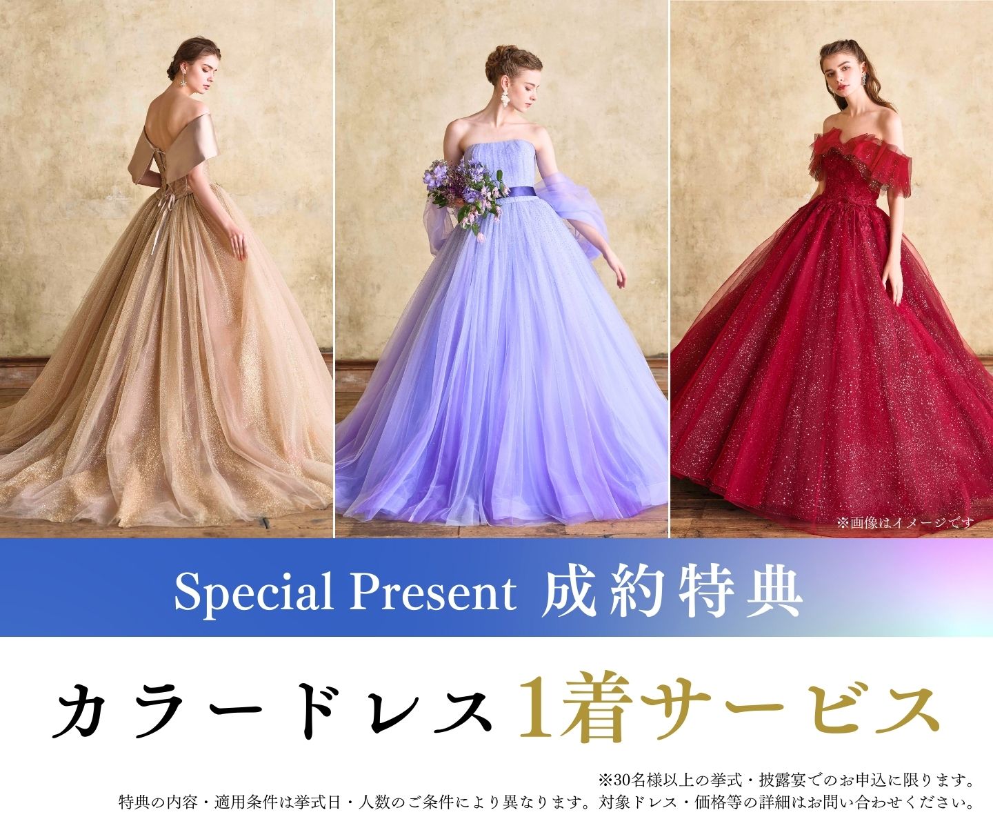 ※ドレス試着ご希望の場合は、ご予約時にお申し出ください。先着順・組数限定となります。